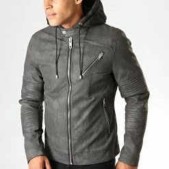 Meilleur prix 😍 Veste Biker Capuche 79719 Gris Anthracite Noir de Classic Series 😉