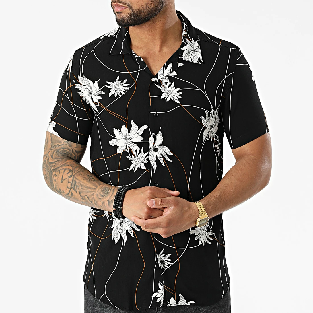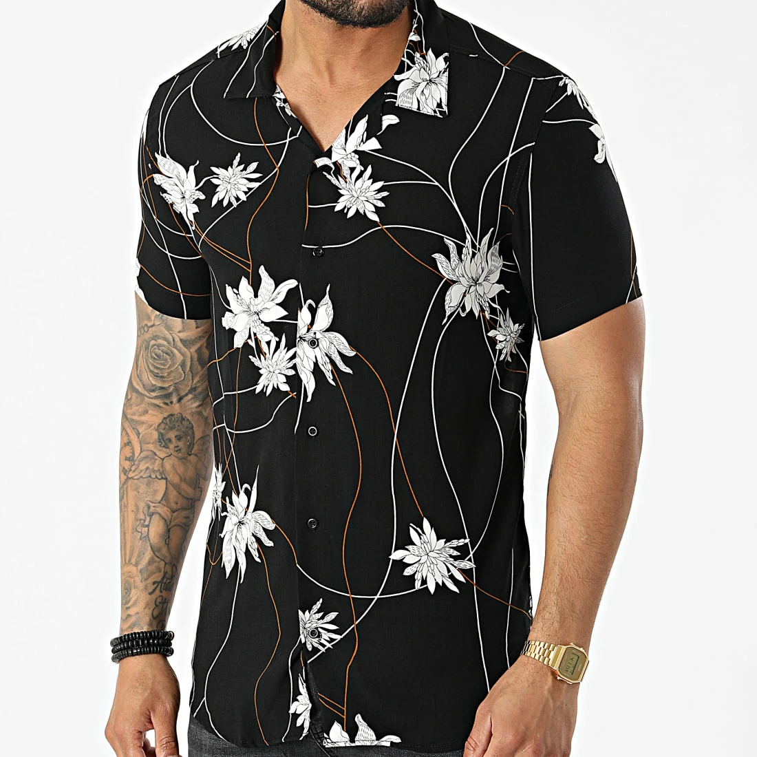 • Chemise à manches courtes estivale avec motif floral imprimé all over