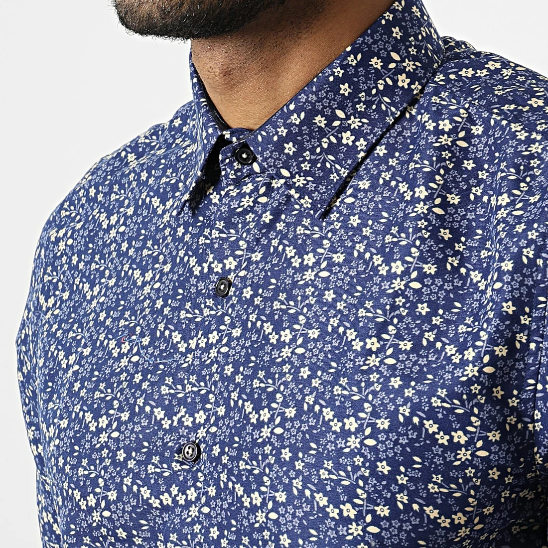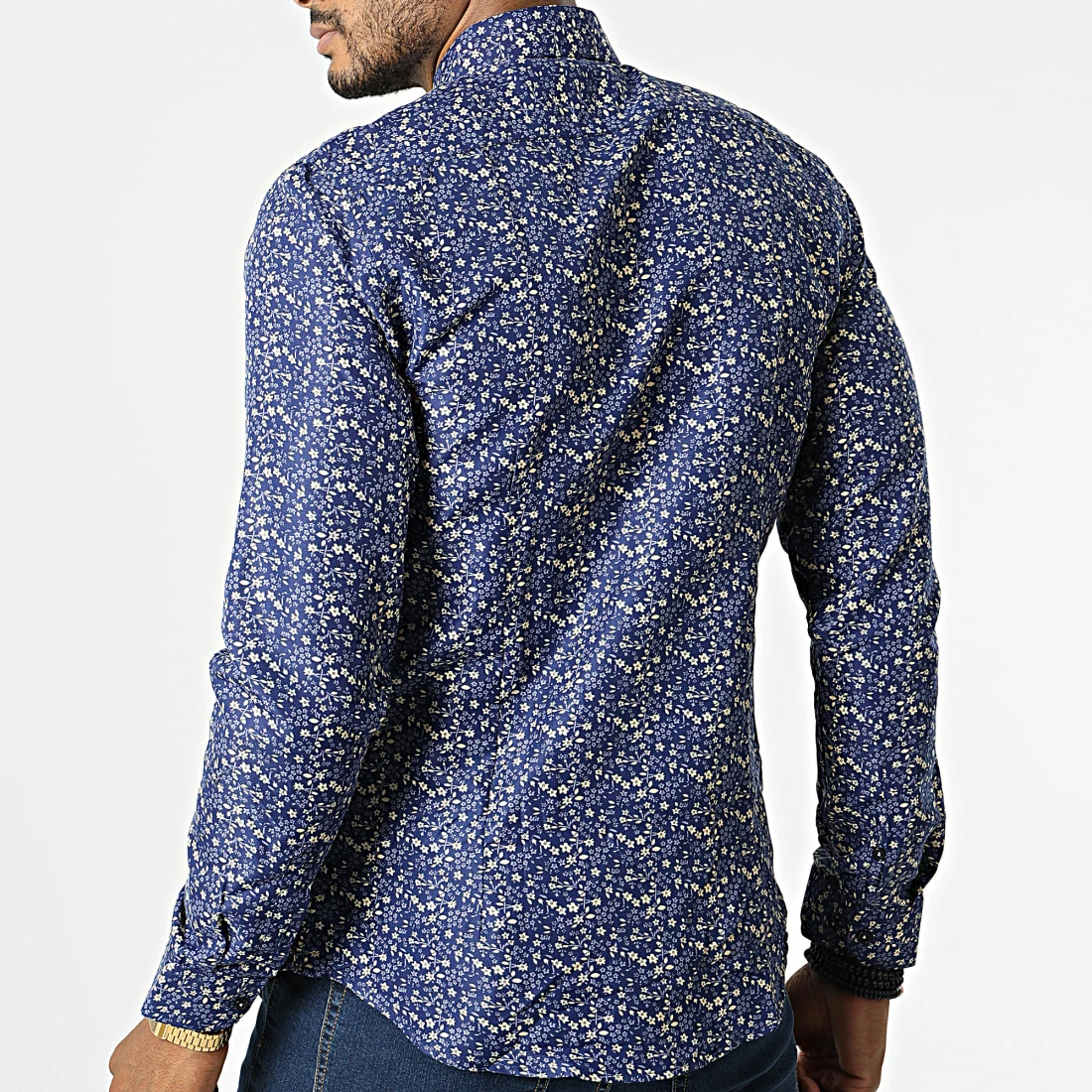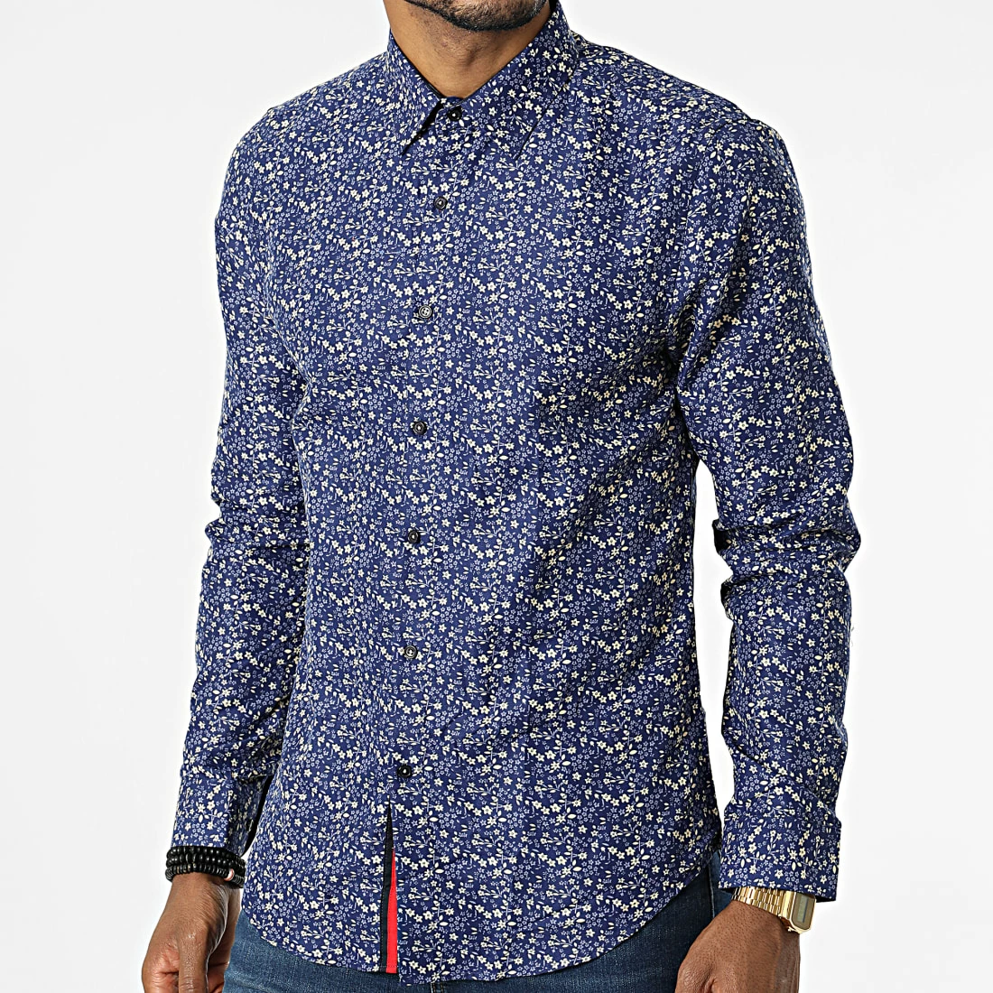 Bon marché 🔥 Chemise A Manches Longues Slim5028 Bleu Roi Beige Floral de Classic Series 😍