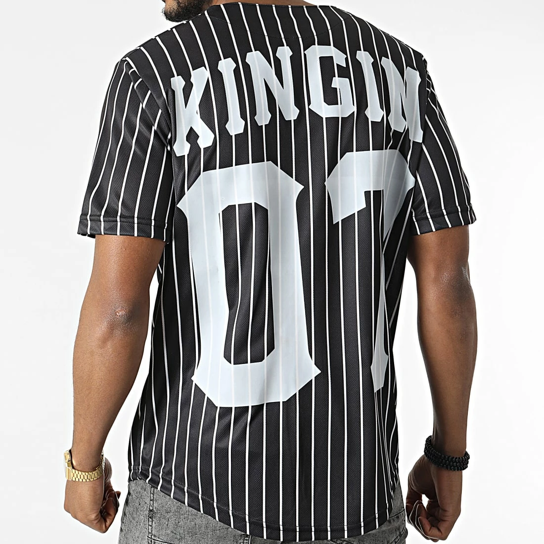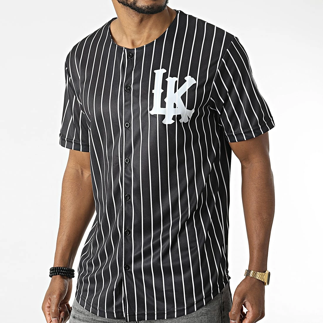 Coupon 🧨 Chemise Manches Courtes Col Rond A Rayures 5925 Noir Blanc de Classic Series ⌛