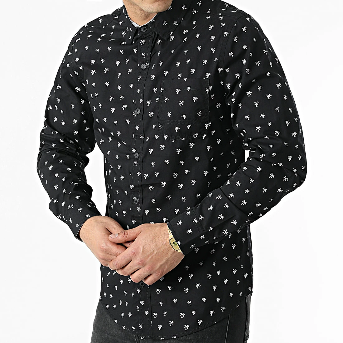 Grosses soldes 😍 Chemise Manches Longues Floral H6313Z Noir de Classic Series 🧨