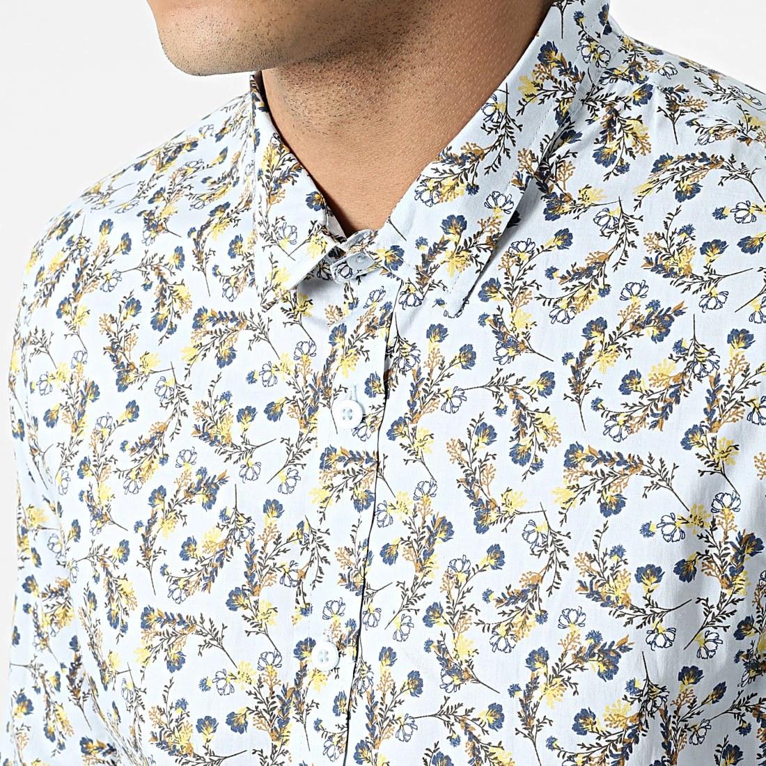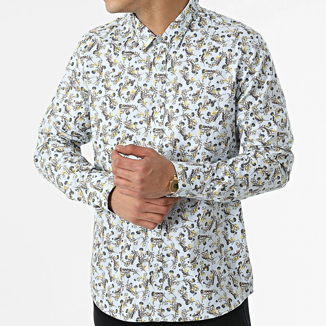 Nouveau 🤩 Chemise Manches Longues Floral H70025 Bleu Clair de Classic Series 🎁