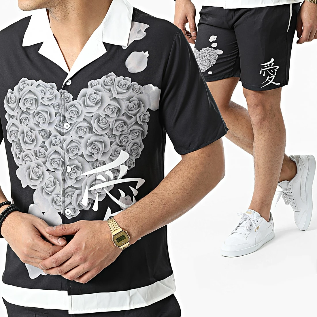• Ensemble chemise à manches courtes et short jogging légère avec motif floral imprimé