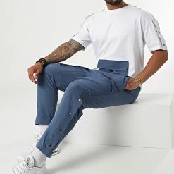 Sortie ✨ Ensemble Tee 👕 Shirt Pantalon Cargo F22-907T Blanc Bleu Clair de Classic Series ❤️