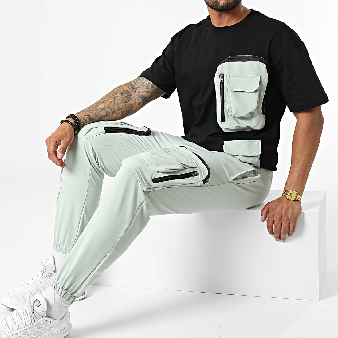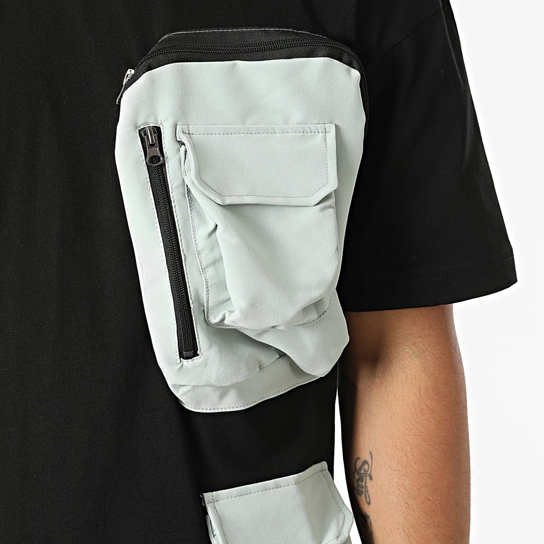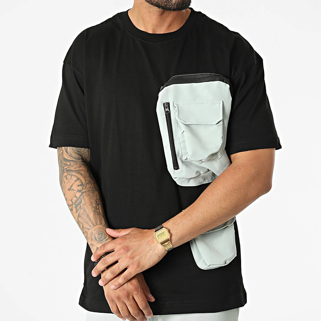 Coupon 🤩 Ensemble Tee 👕 Shirt Poche Et Pantalon Jogging F22-908T Noir Turquoise de Classic Series 🧨