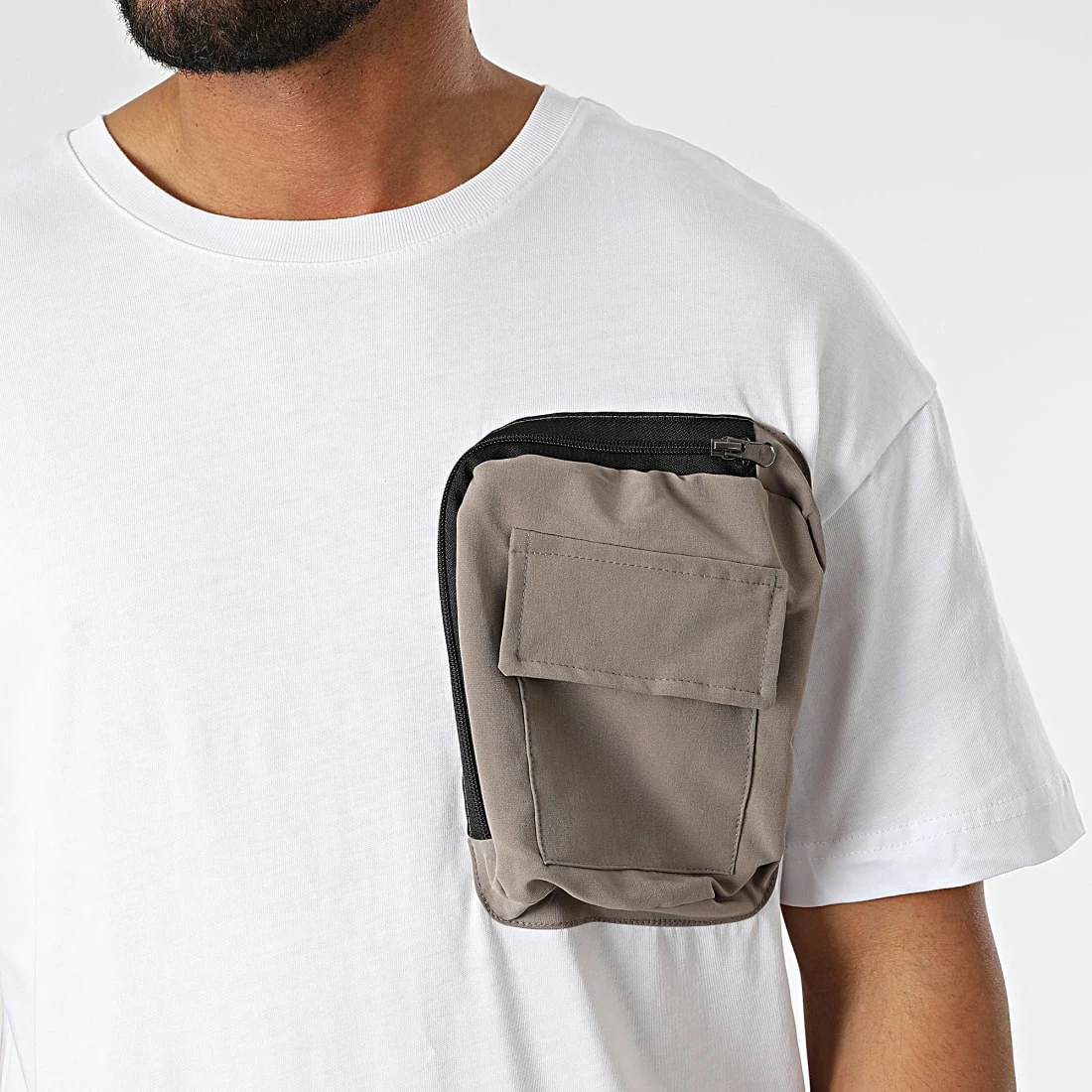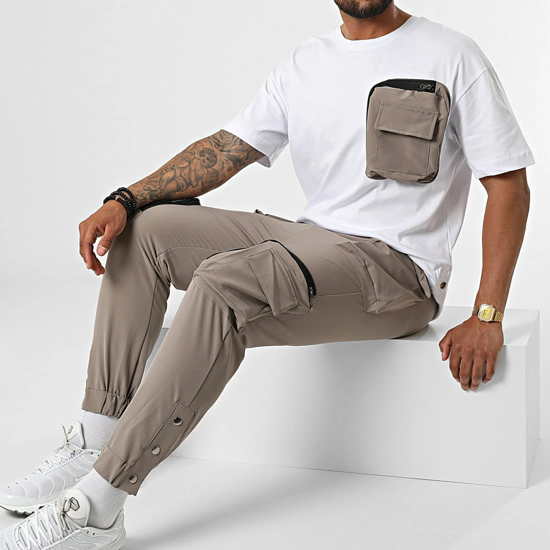 Top 10 💯 Ensemble Tee 👚 Shirt Poche Et Pantalon Jogging F22-909T Taupe Blanc de Classic Series 🔔