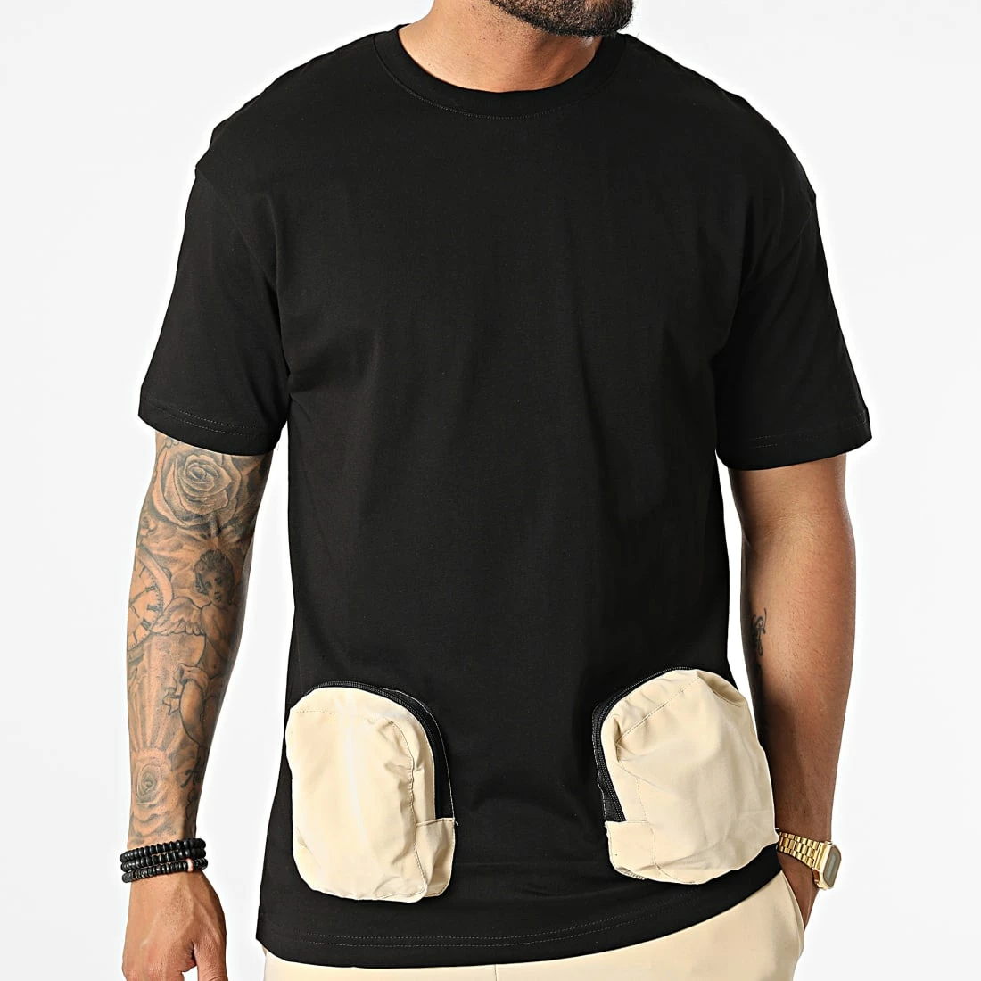 Nouveau 👏 Ensemble Tee 👚 Shirt Poche Et Pantalon Jogging F22-910T Noir Beige de Classic Series ✨