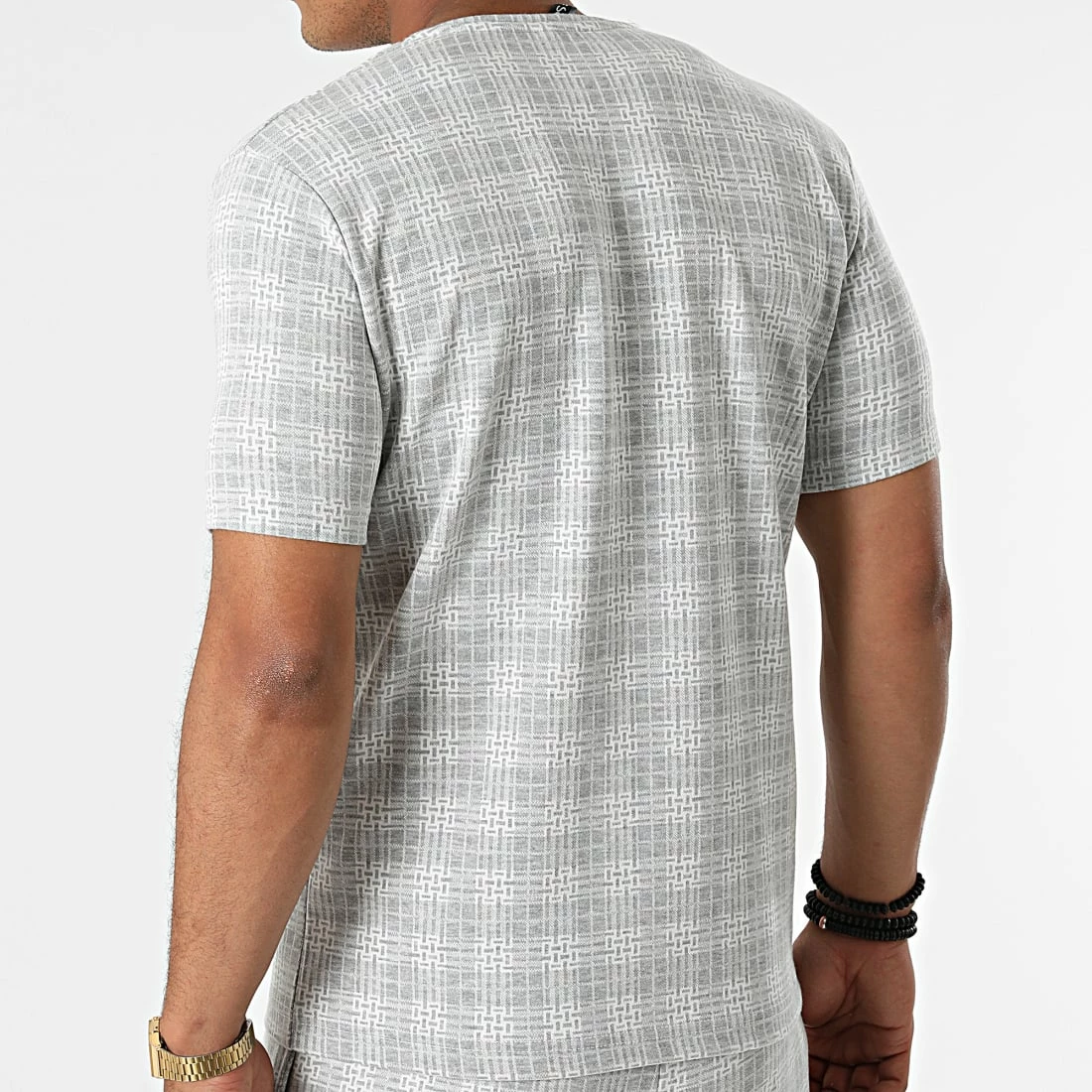 Vente flash ✨ Ensemble Tee 👚 Shirt Short A Carreaux 156T Gris de Classic Series ❤️