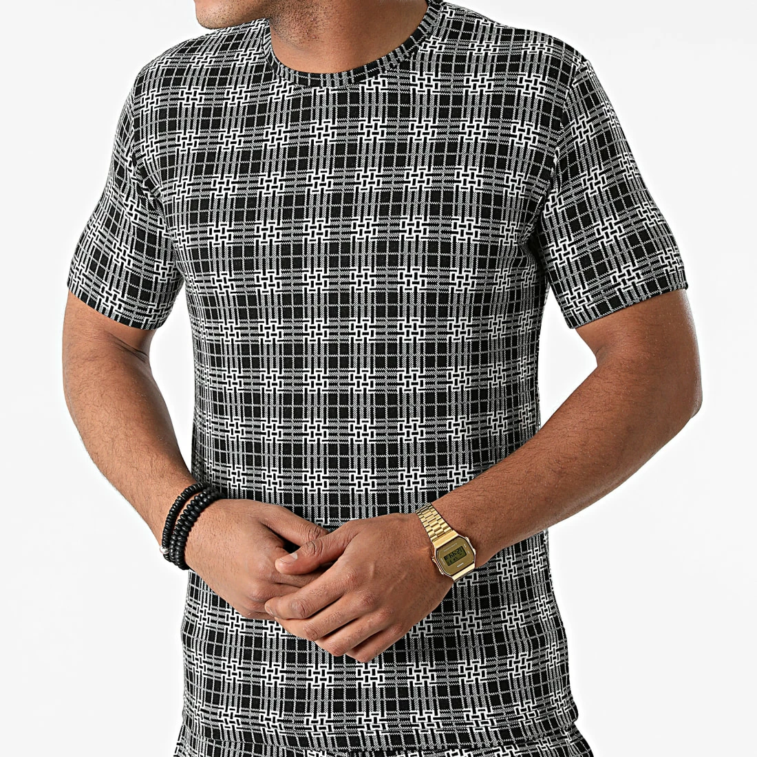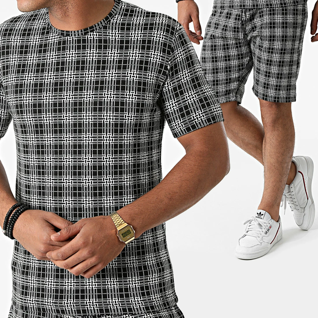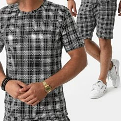 Sortie 🔔 Ensemble Tee 👚 Shirt Short A Carreaux 156T Noir de Classic Series ⭐