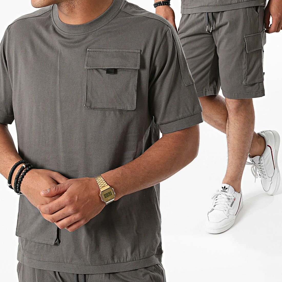 Meilleure vente ⌛ Ensemble Tee 👕 Shirt Short AD003 Gris Anthracite de Classic Series 🔥