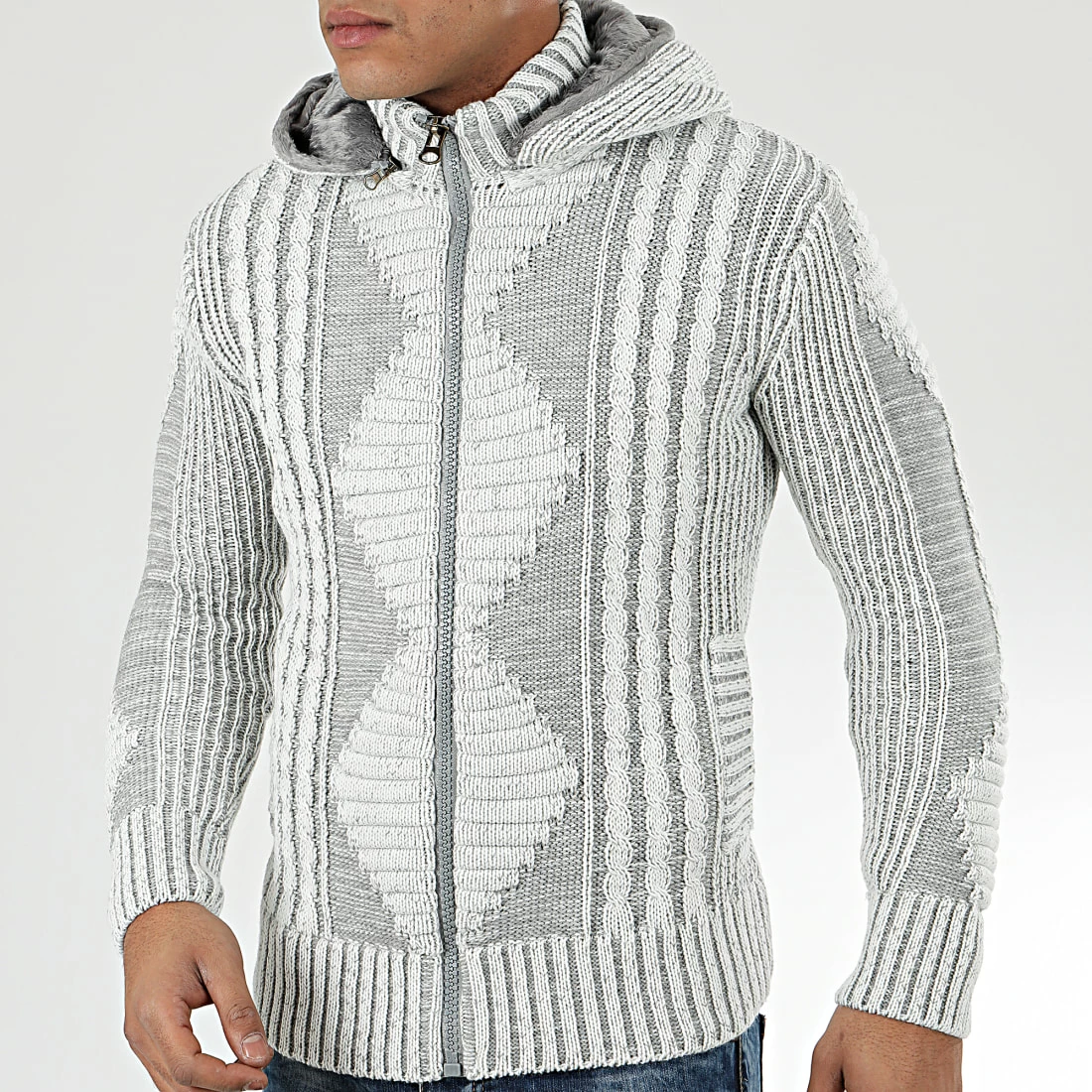 Bon marché 🎁 Gilet Zippé Capuche 1021 Blanc Gris de Classic Series 🔔