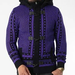 Meilleure affaire 🎁 Gilet Zippé Capuche 3007 Bleu Marine Violet de Classic Series 🧨