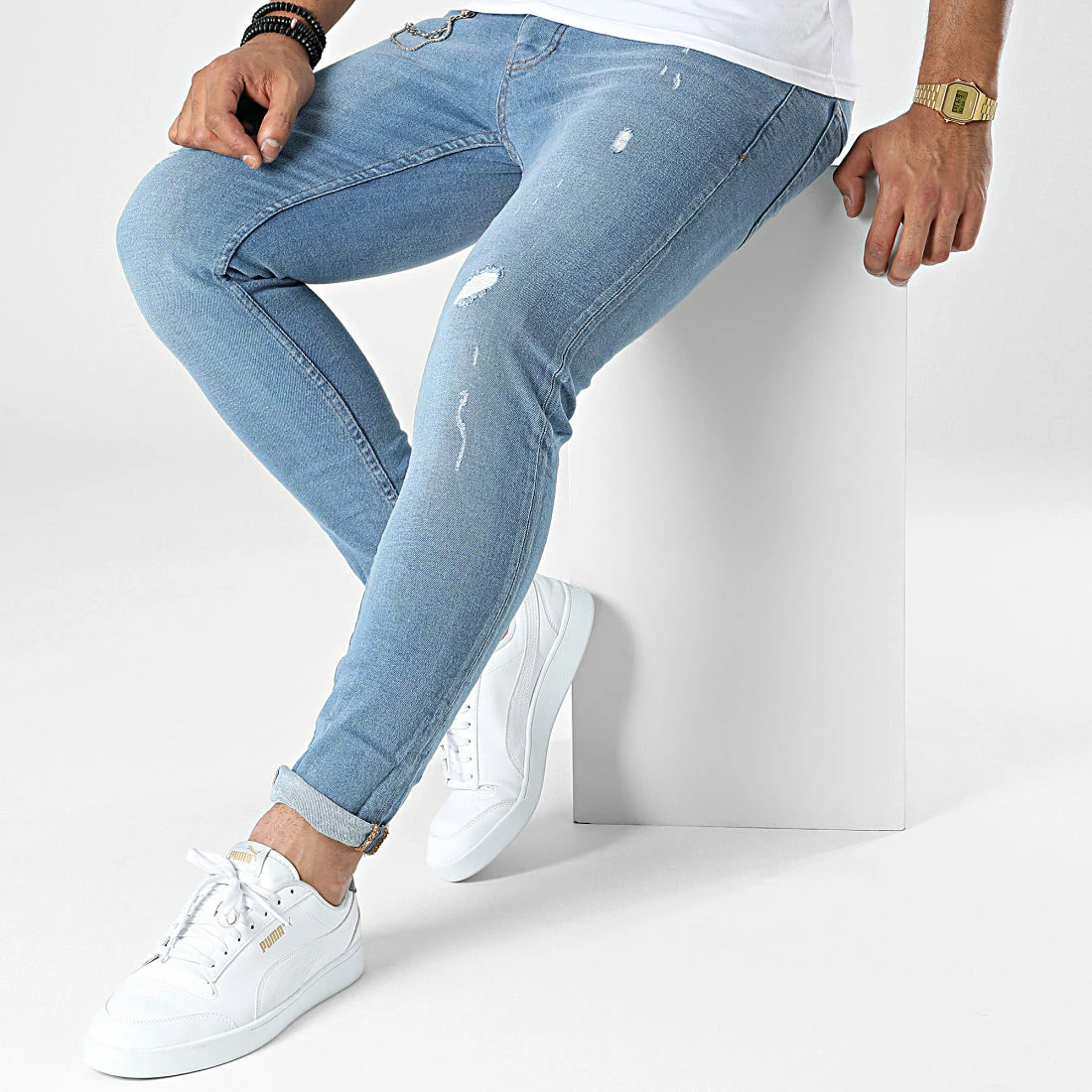 • Jean skinny tendance finition délavée et usée avec rapiéçages