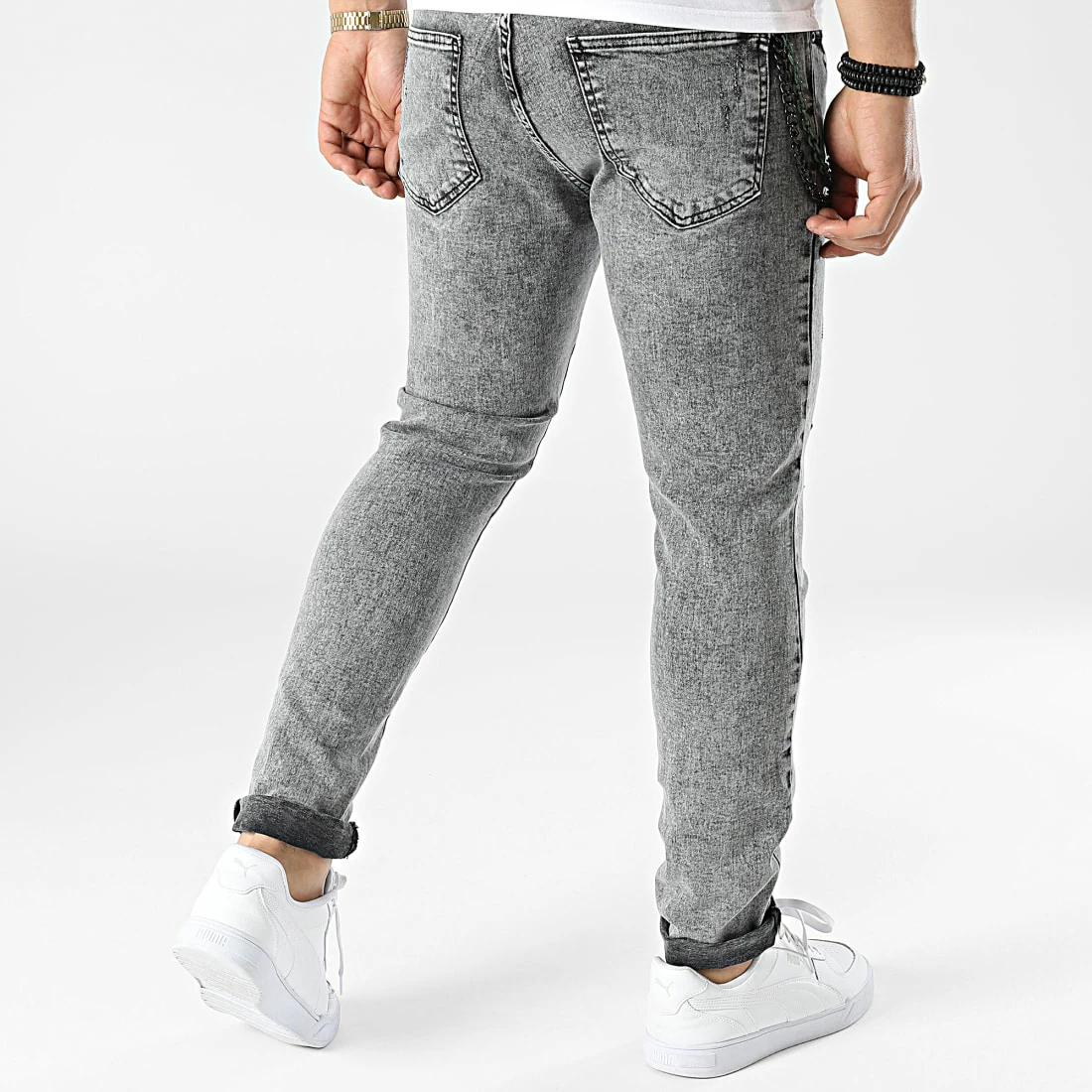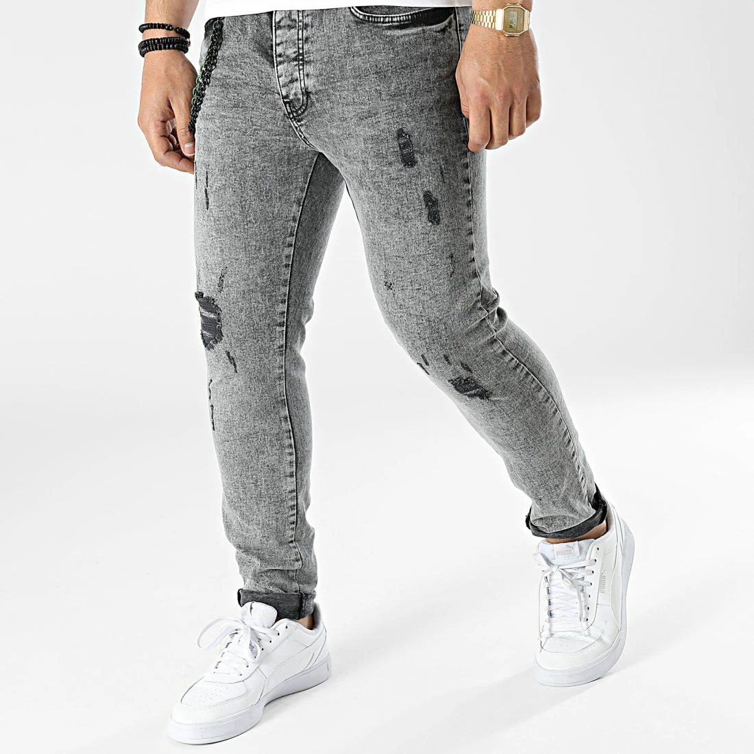 • Jean tendance skinny finition délavée et usée avec rapiéçages