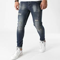 • Jean skinny finition délavée, tachée et usée avec rapiéçages