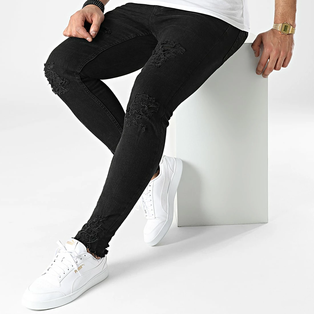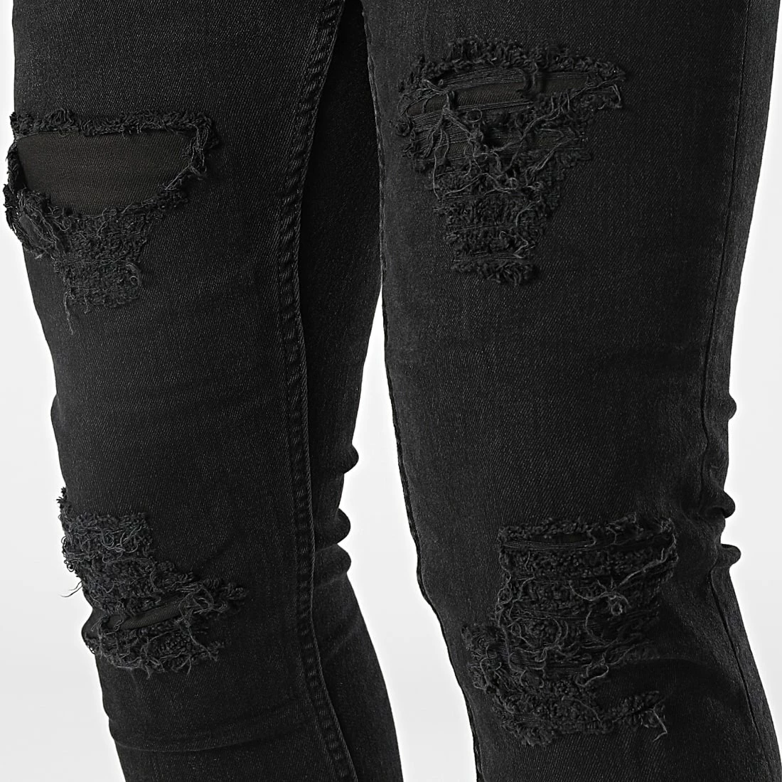 • Jean skinny finition délavée et usée avec rapiéçages