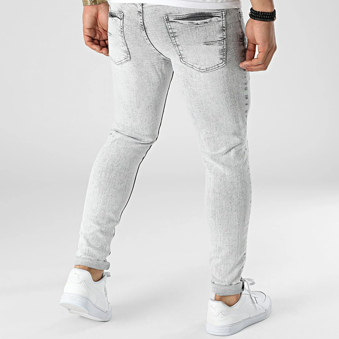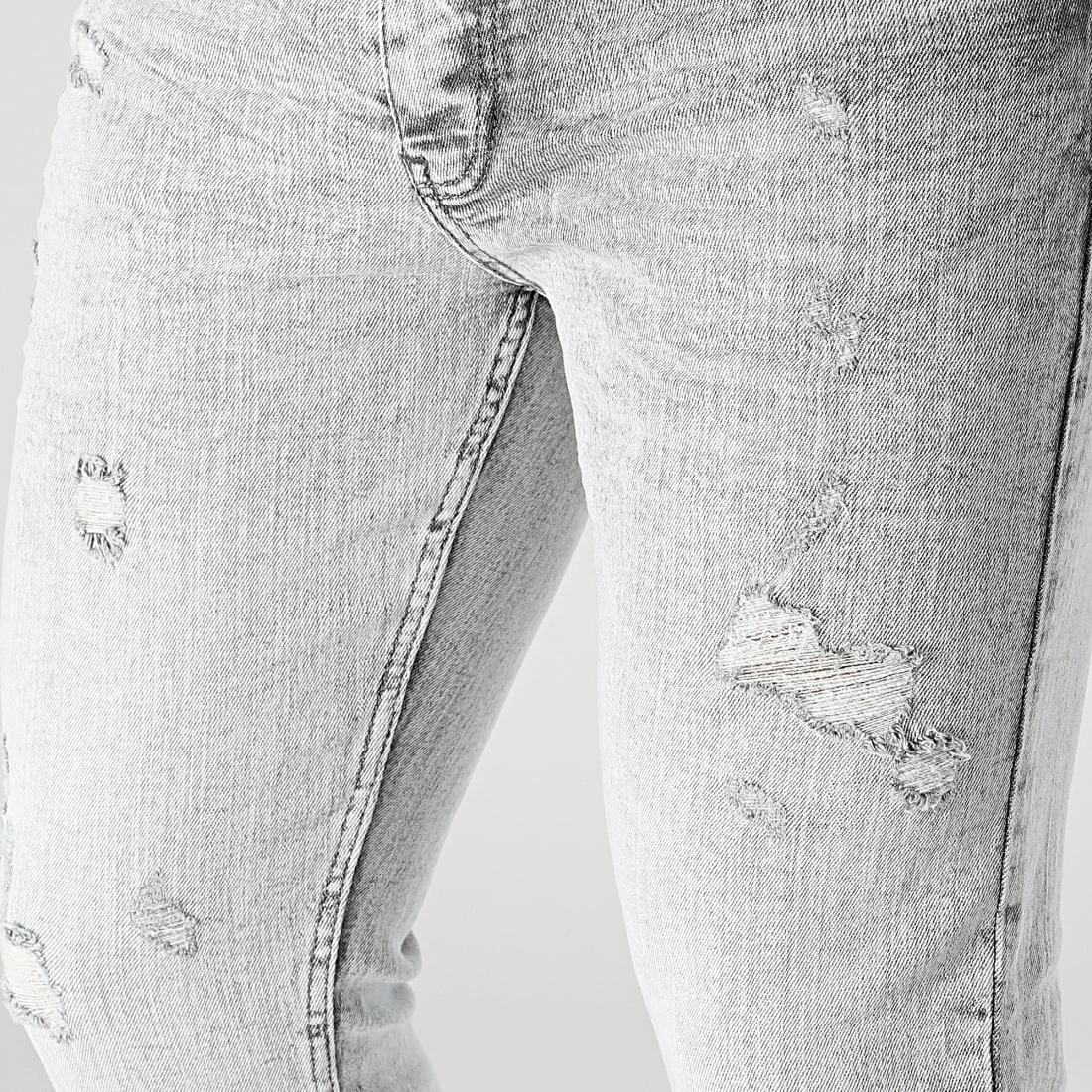• Jean skinny finition délavée, tachée et usée avec rapiéçages