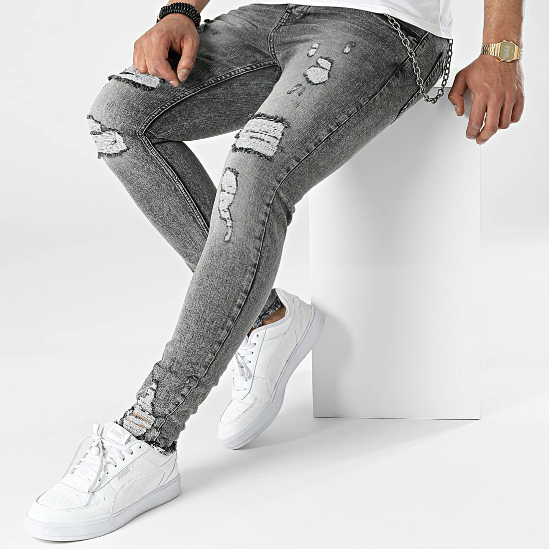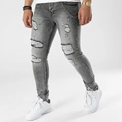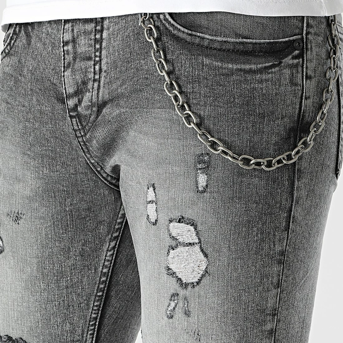 • Jean skinny finition délavée et usée avec rapiéçages