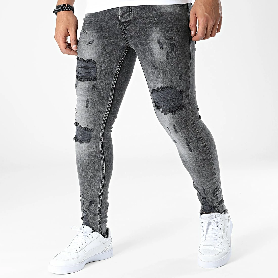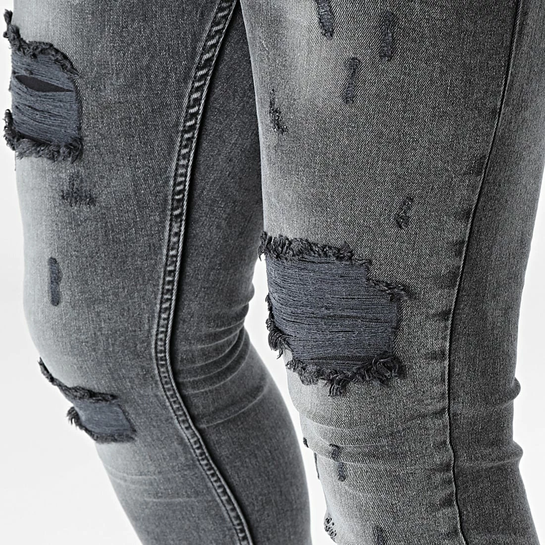 • Jean skinny stretch finition délavée et usée avec rapiéçages