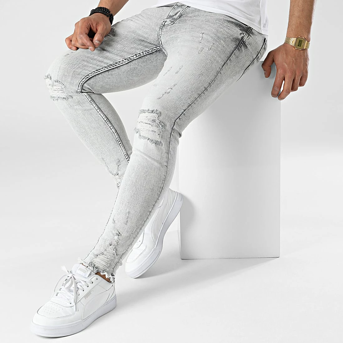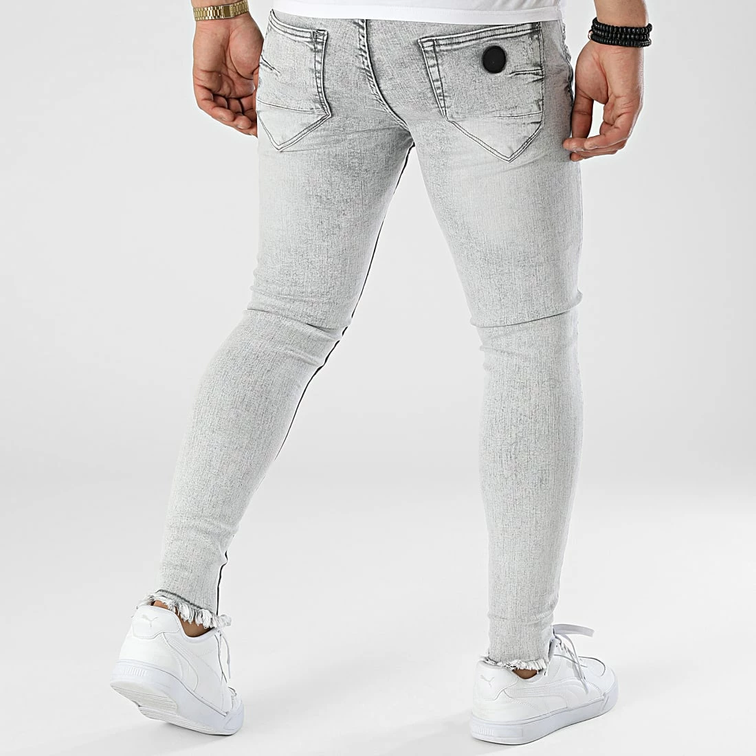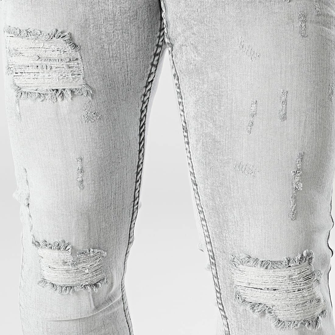 • Jean skinny finition délavée et usée avec rapiéçages