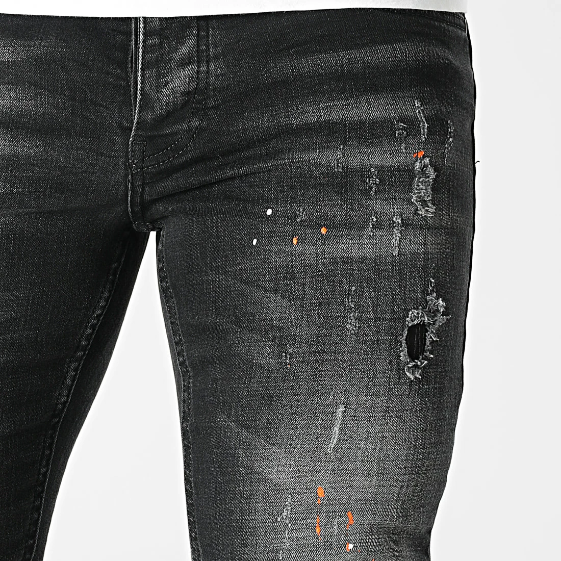 • Finition usée, tachée, délavée et avec rapiéçages