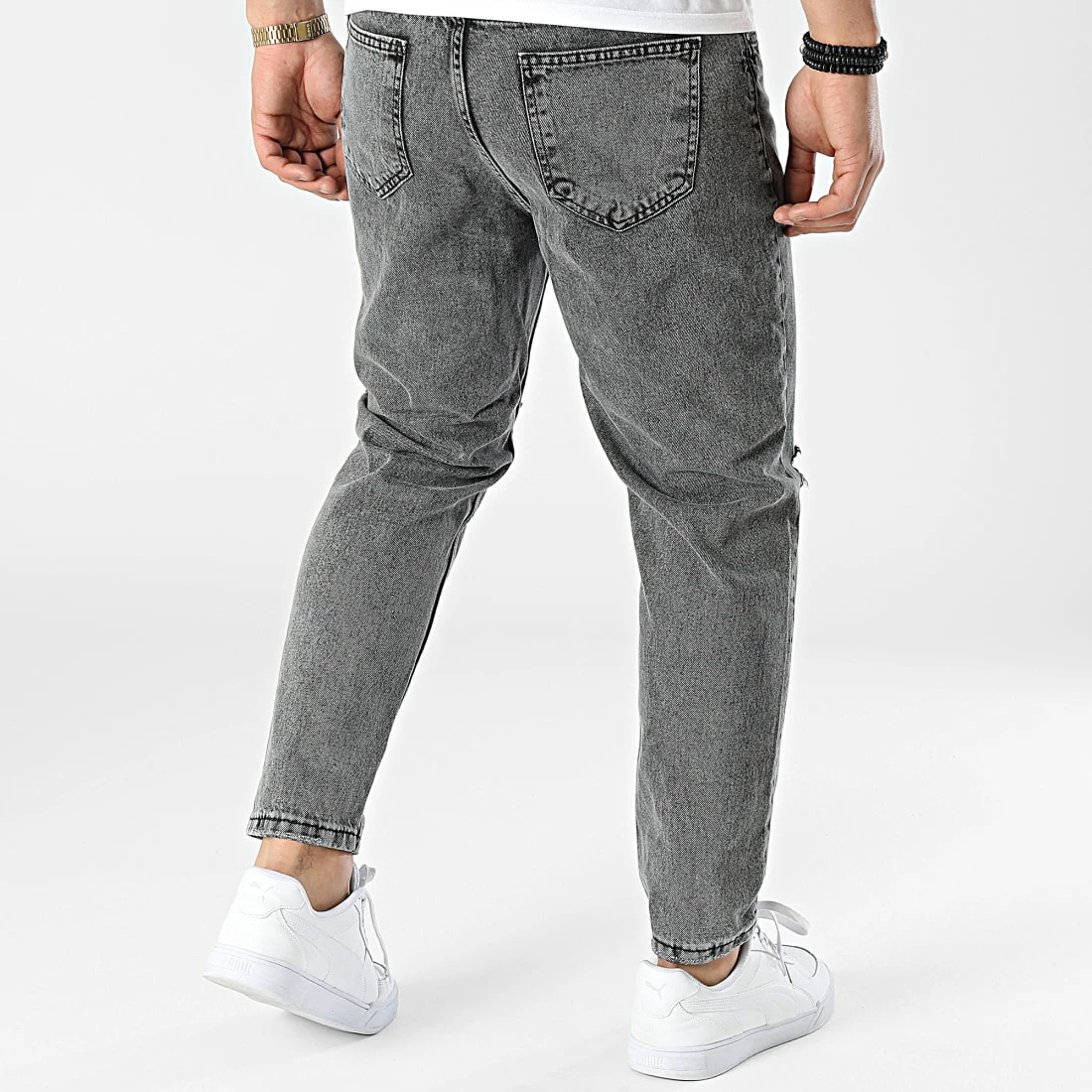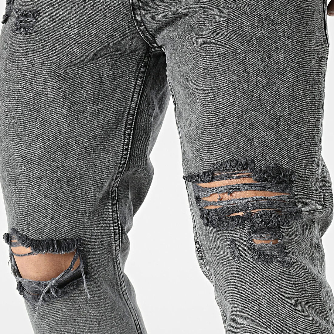 • Jean slim finition délavée et usée avec trous apparents