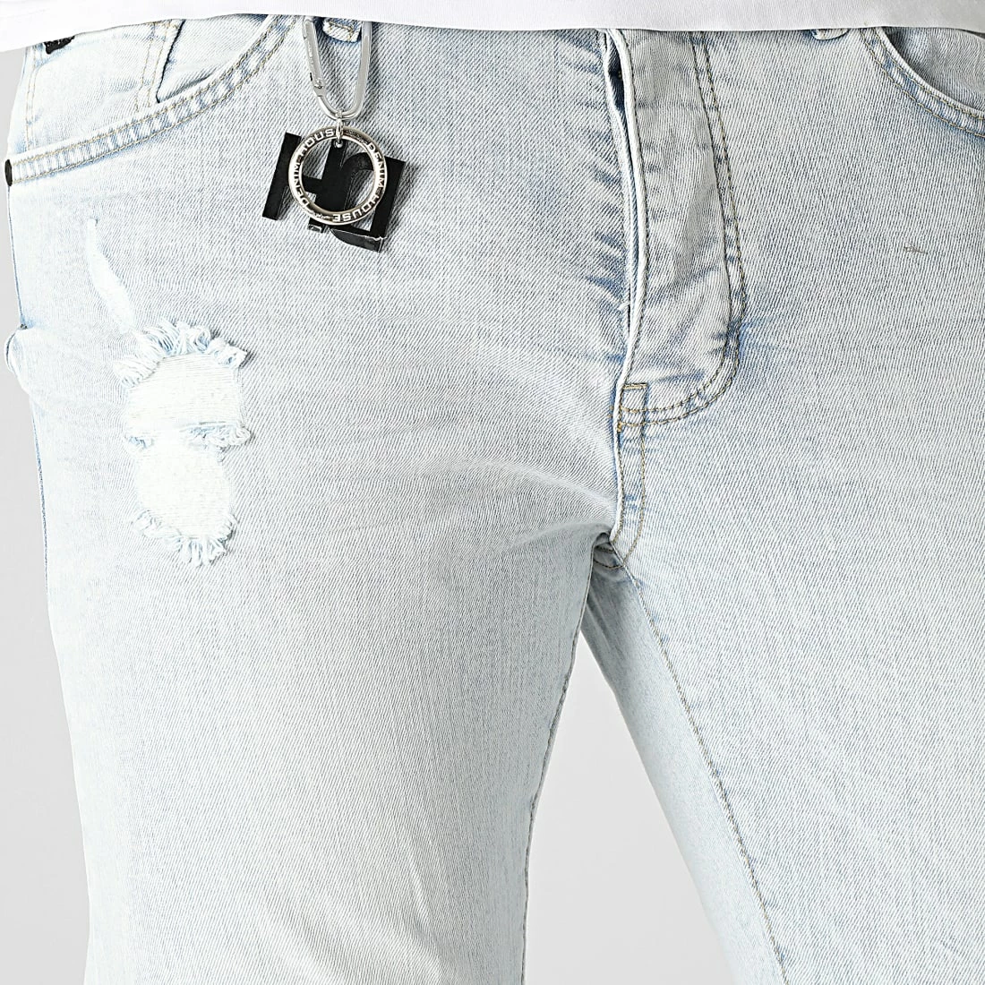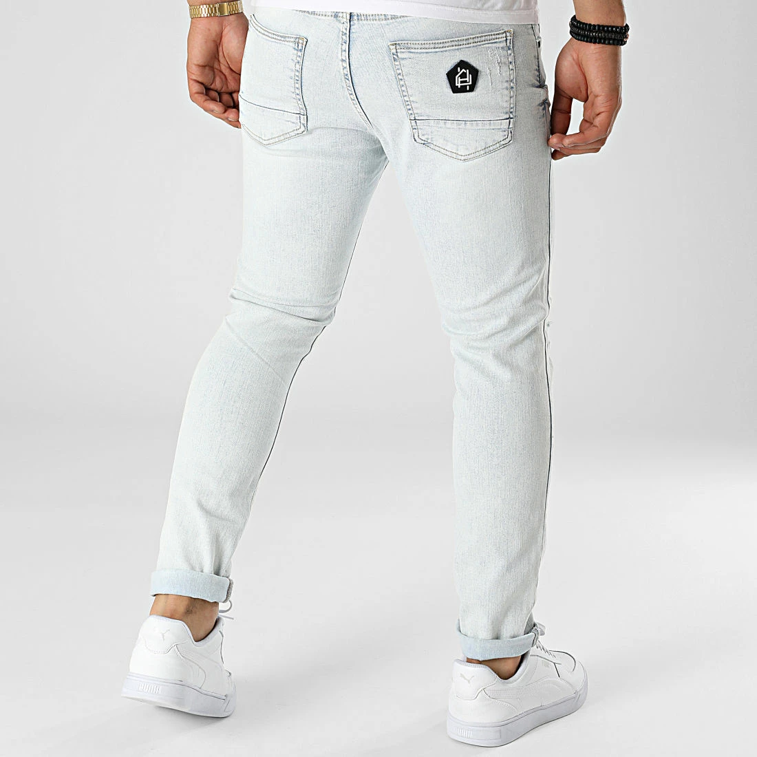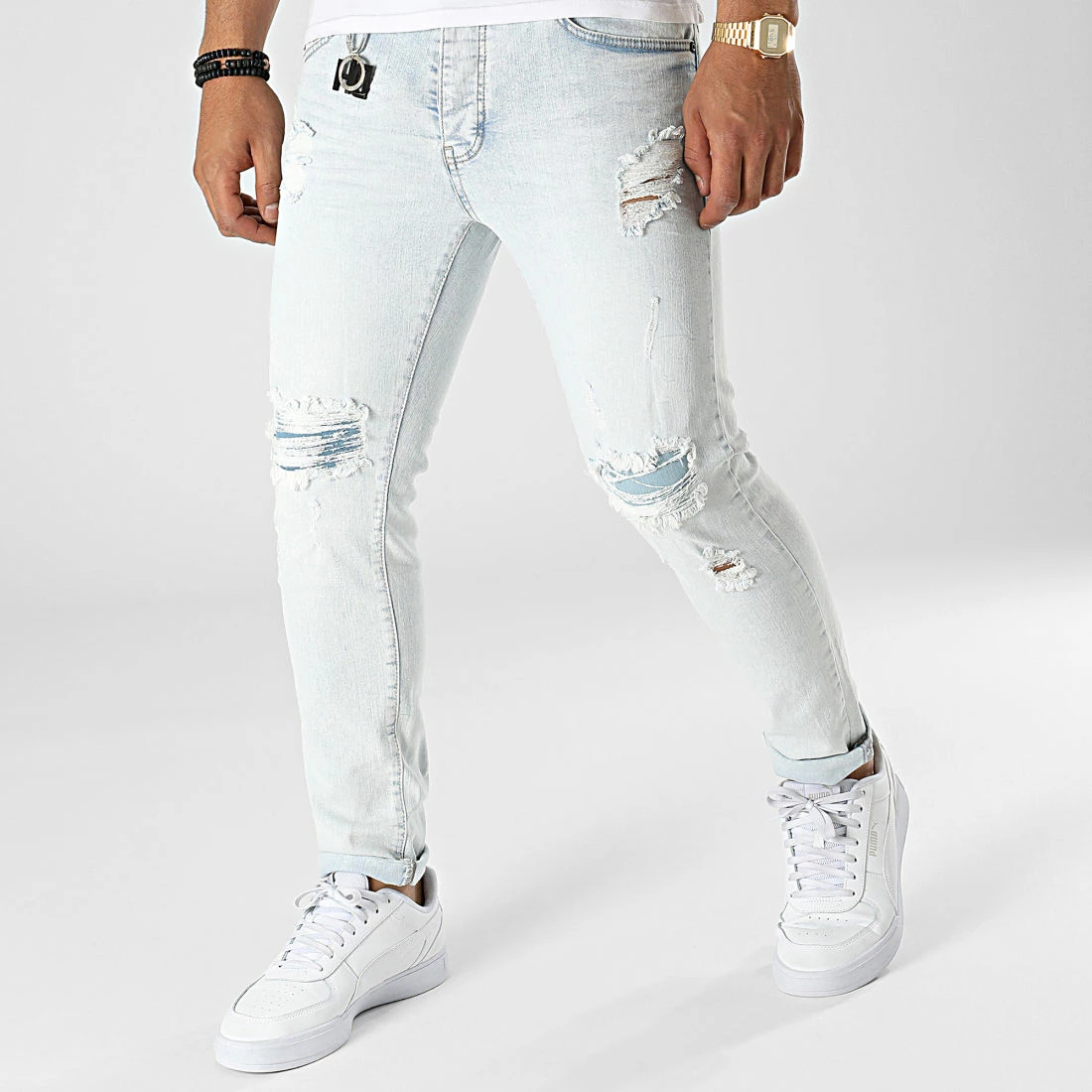 • Jean slim tendance finition usée et délavée avec rapiéçages