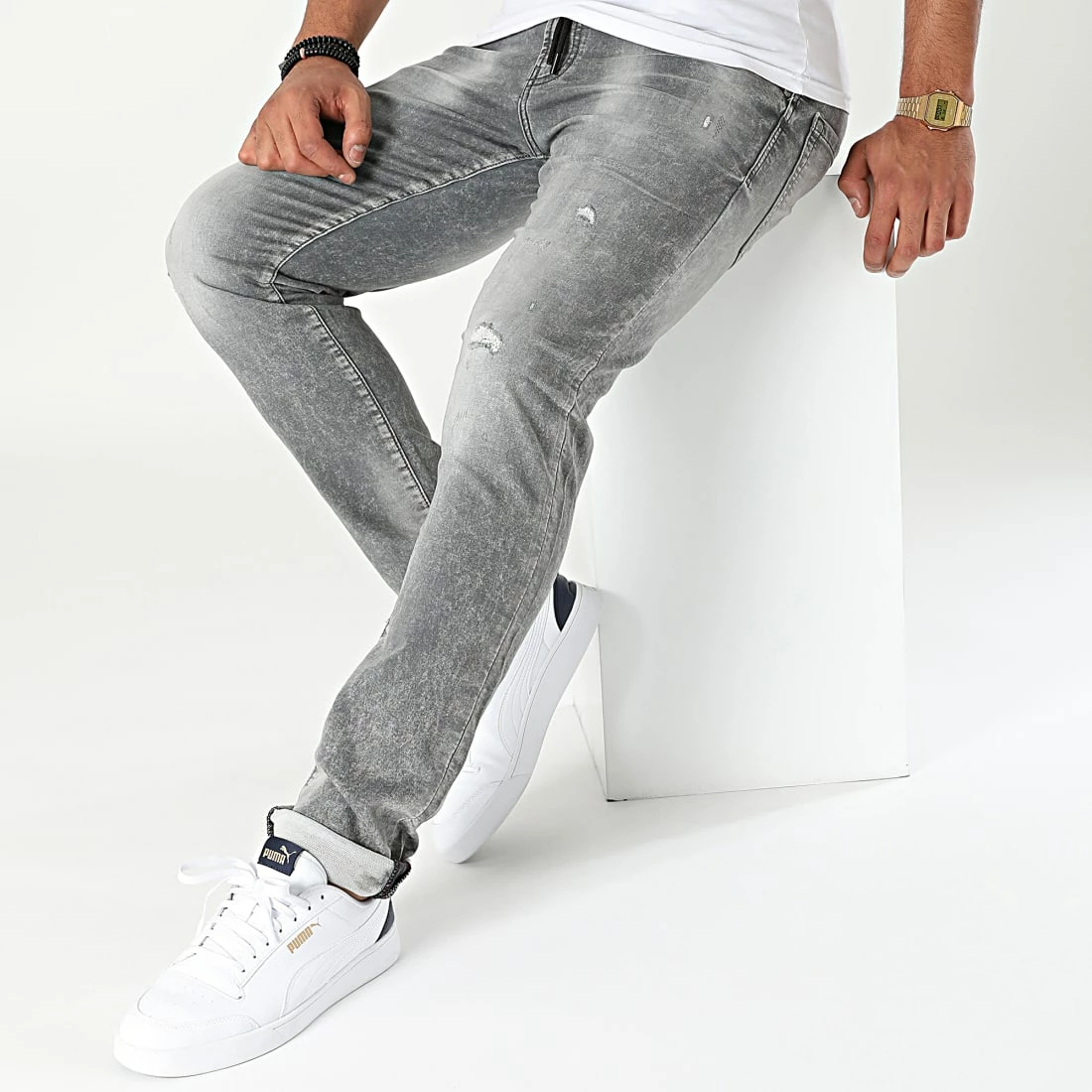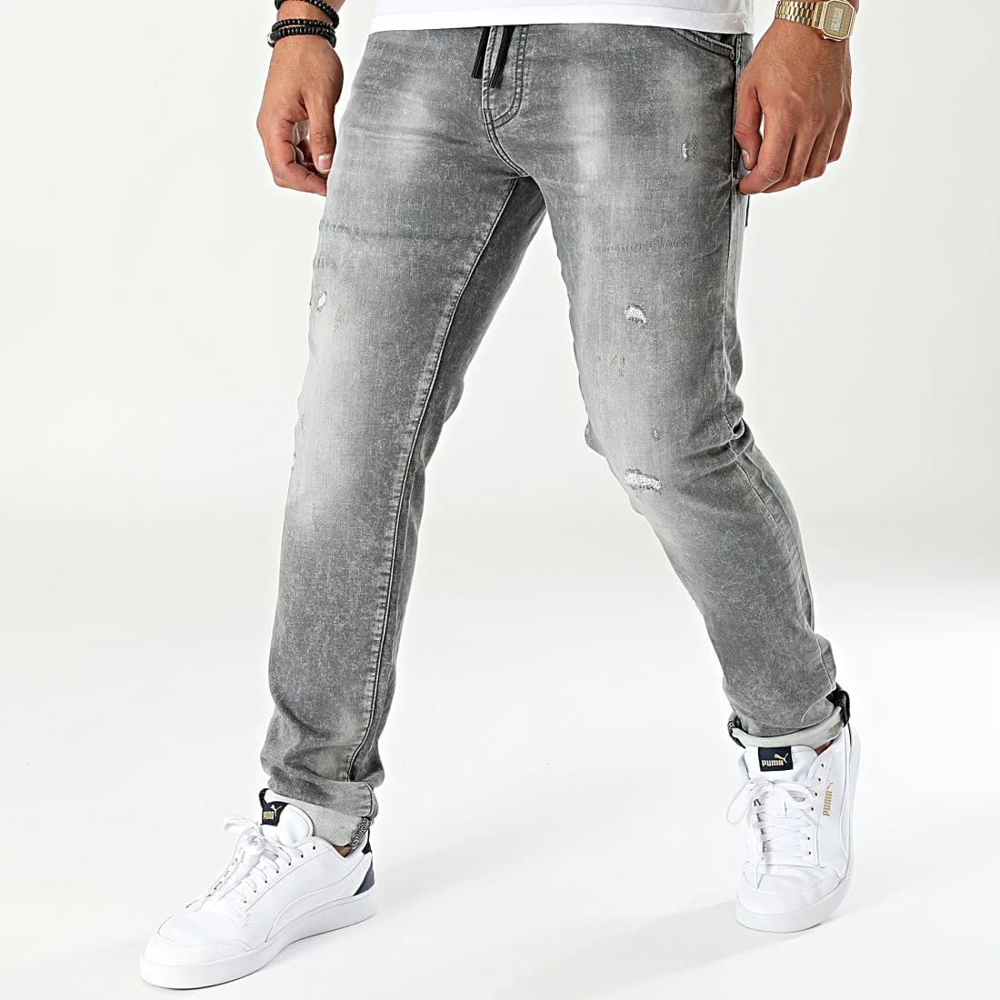 • Jean style jogger finition usée et délavée avec rapiéçages