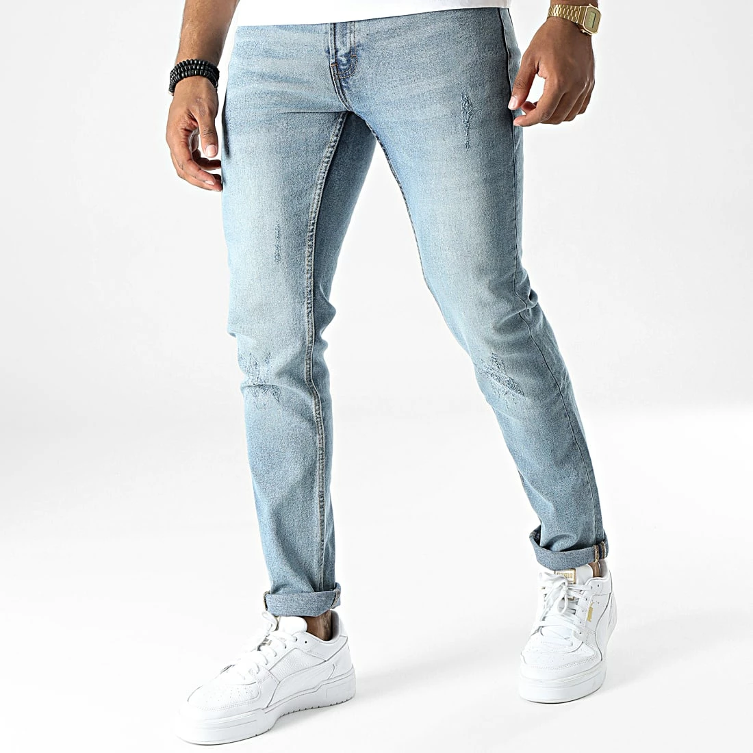 Top 10 🎁 Jean Slim Mr Red Light Destroy DP1009 Bleu Denim de Classic Series ✔️