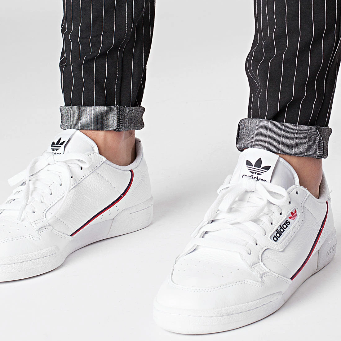 • Pantalon chino en tissu stretch avec motif rayures