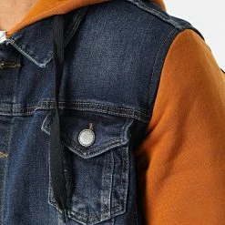 Promo 😍 Veste Jean Capuche 1944 Bleu Denim Orange de Classic Series 🧨