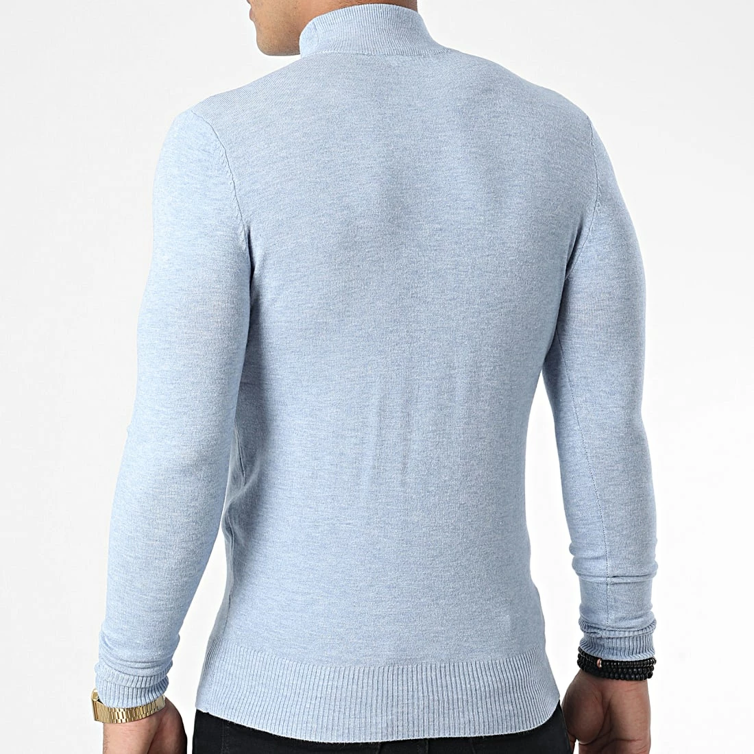 Grosses soldes 🧨 Pull Col Cheminée 665 Bleu Clair Chiné de Classic Series 🥰