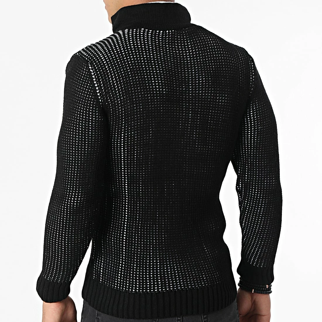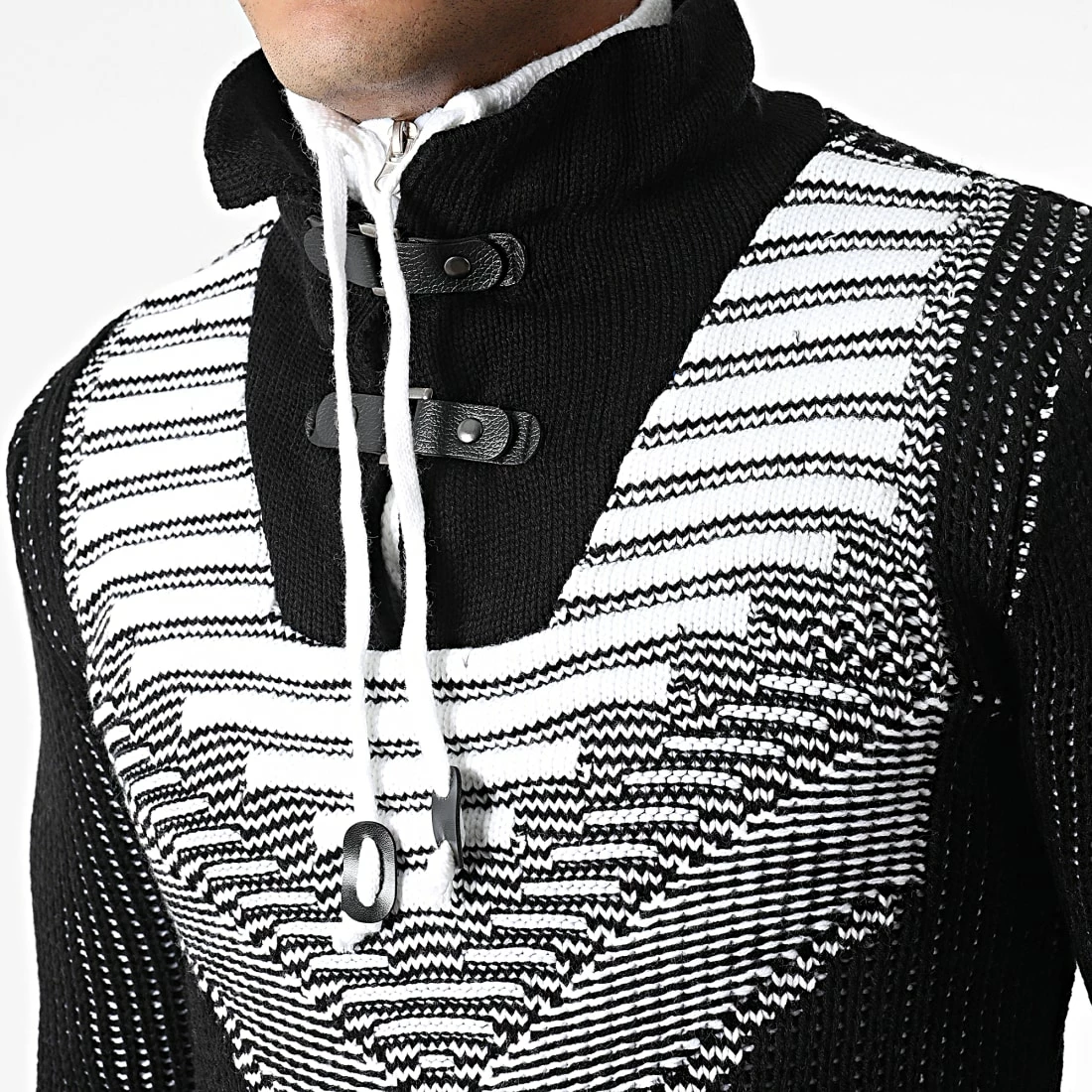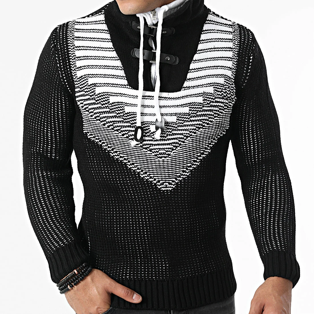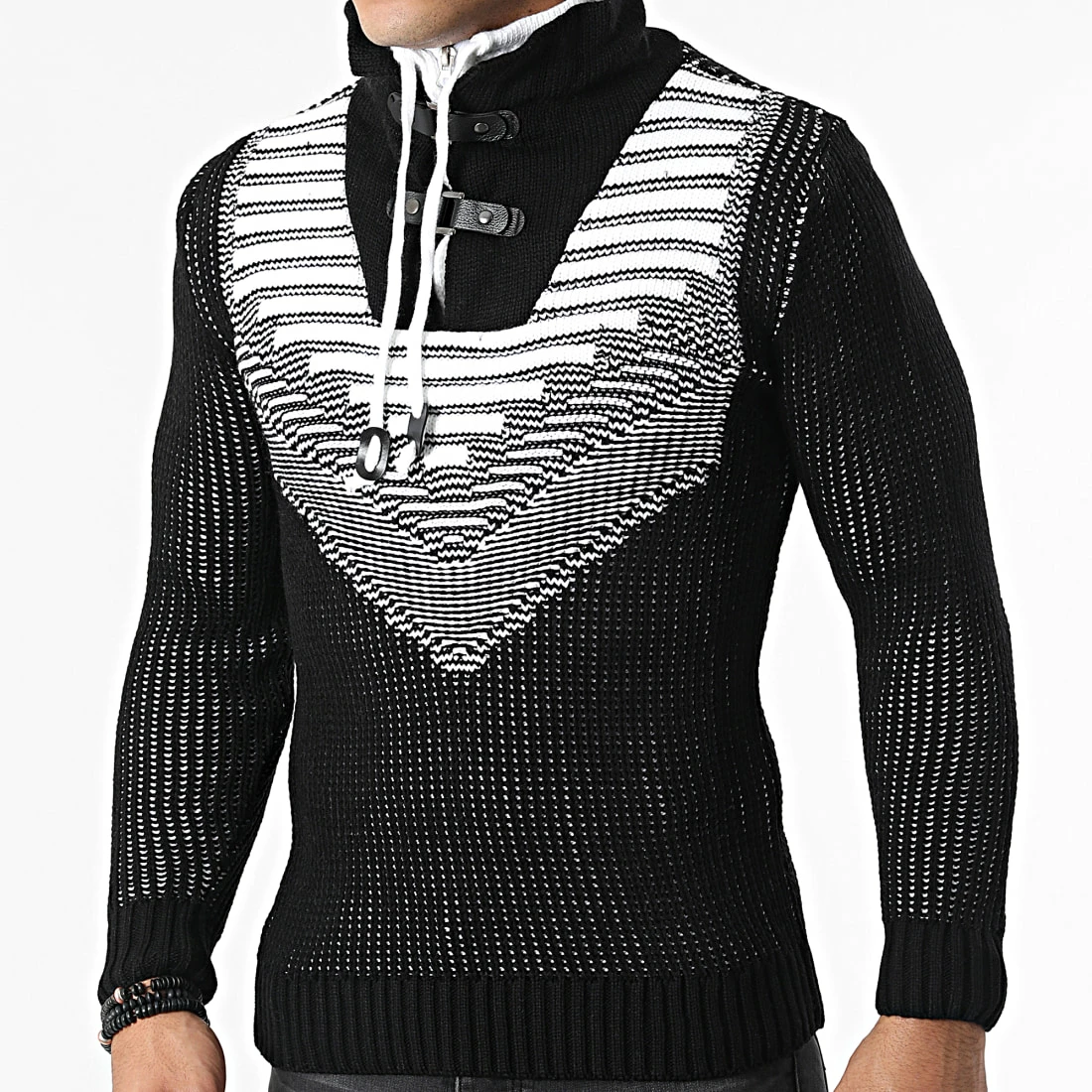 Grosses soldes 🎁 Pull Col Montant 5017 Noir Beige Clair de Classic Series ✔️