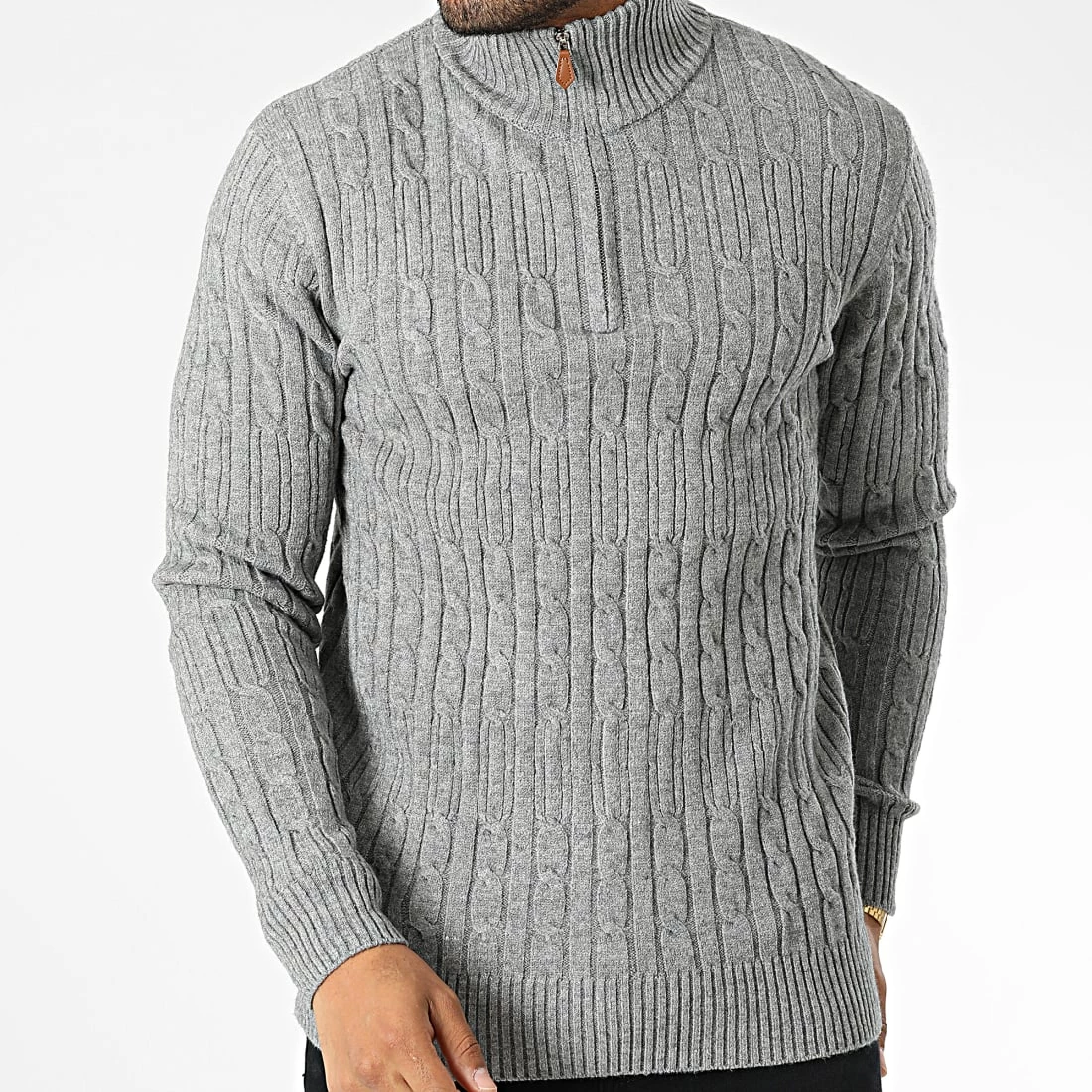 Meilleur prix ⭐ Pull Col Zippé 6852 Gris Chiné de Classic Series 💯