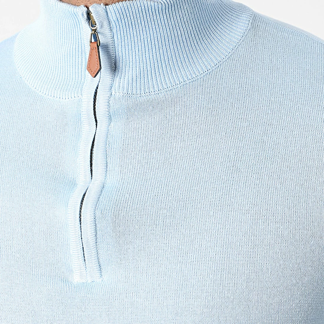 Promo 😀 Pull Col Zippé J666 Bleu Clair de Classic Series 🎉