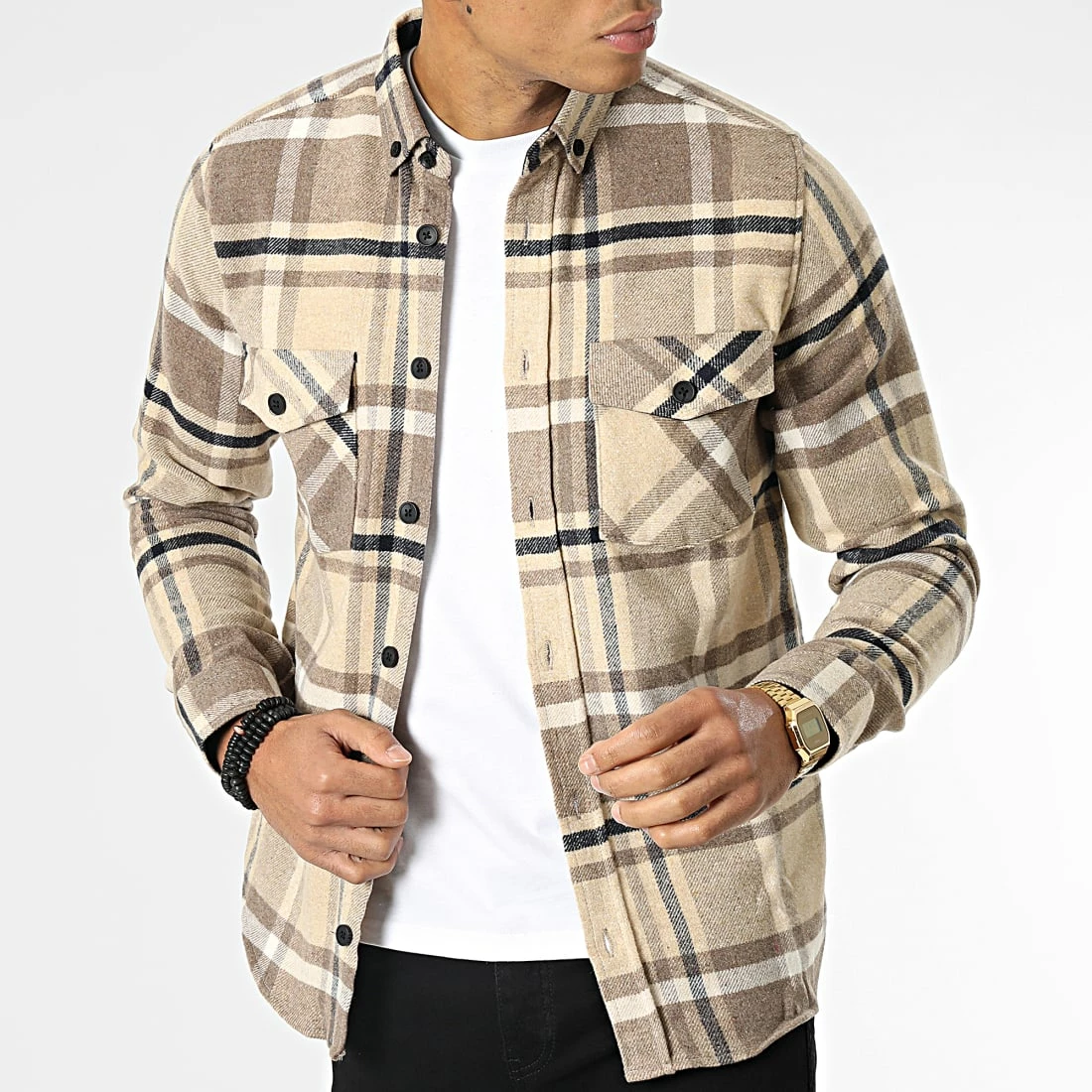 Promo 💯 Surchemise Carreaux Y-2242 Beige de Classic Series ❤️