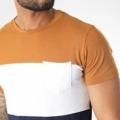 Meilleur prix ✔️ Tee 👕 Shirt Poche Tricolore 4034 Bleu Marine Blanc Camel de Classic Series 👍