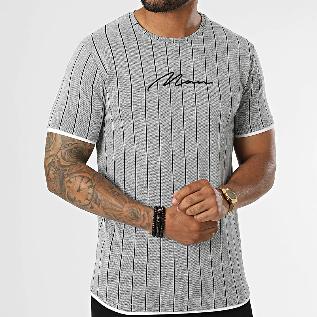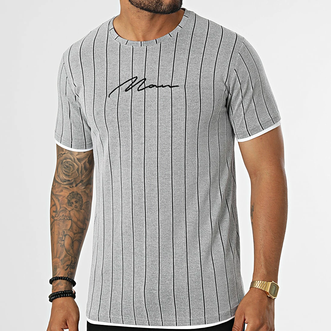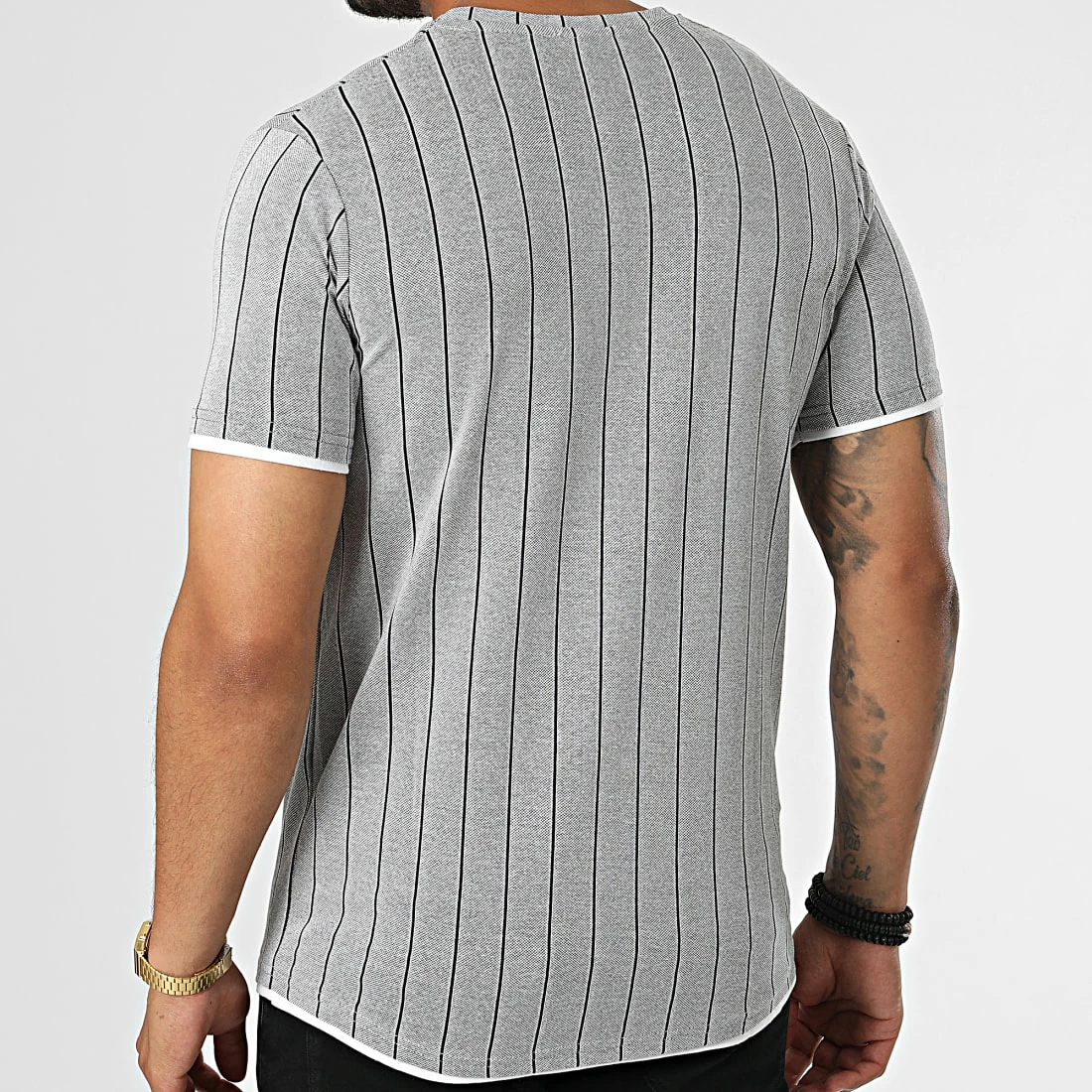 Grosses soldes 🎉 Tee 👚 Shirt A Rayures LM277 Gris Chiné de Classic Series ✔️
