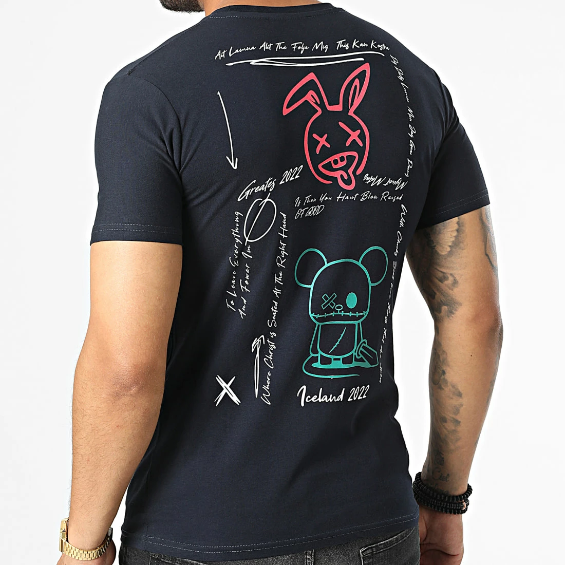 • Tee shirt en coton stretch imprimé visuel à l’avant et au dos