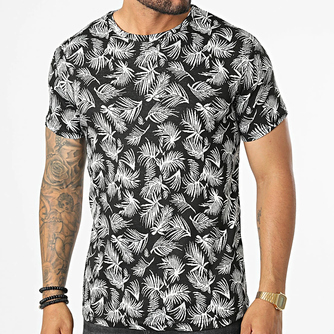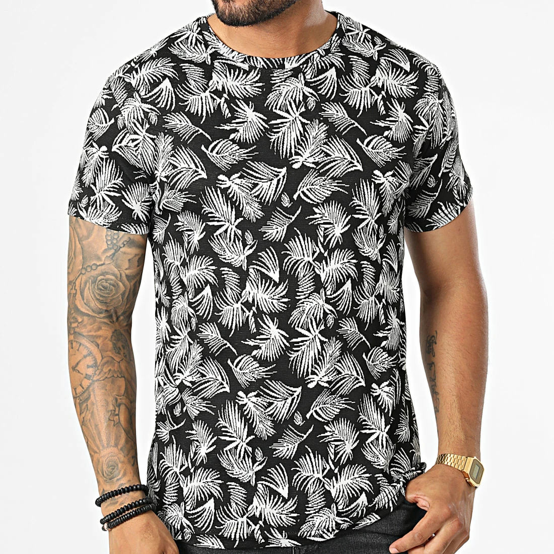 Nouveau 👍 Tee 👚 Shirt LM458 Noir Blanc Floral de Classic Series 🔔