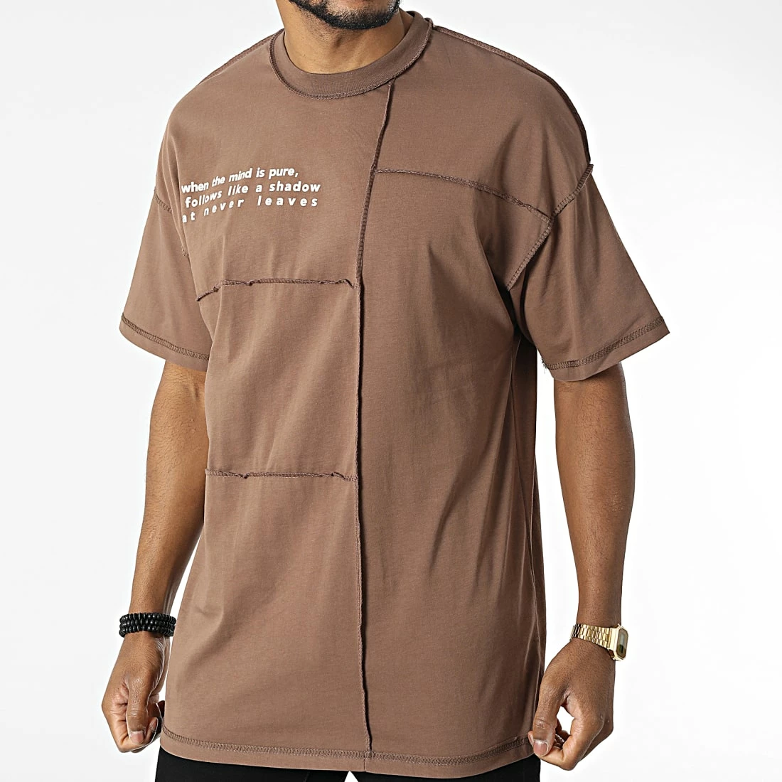 Offres 🎁 Tee 👕 Shirt Oversize Large 22-Y261 Marron de Classic Series 🛒