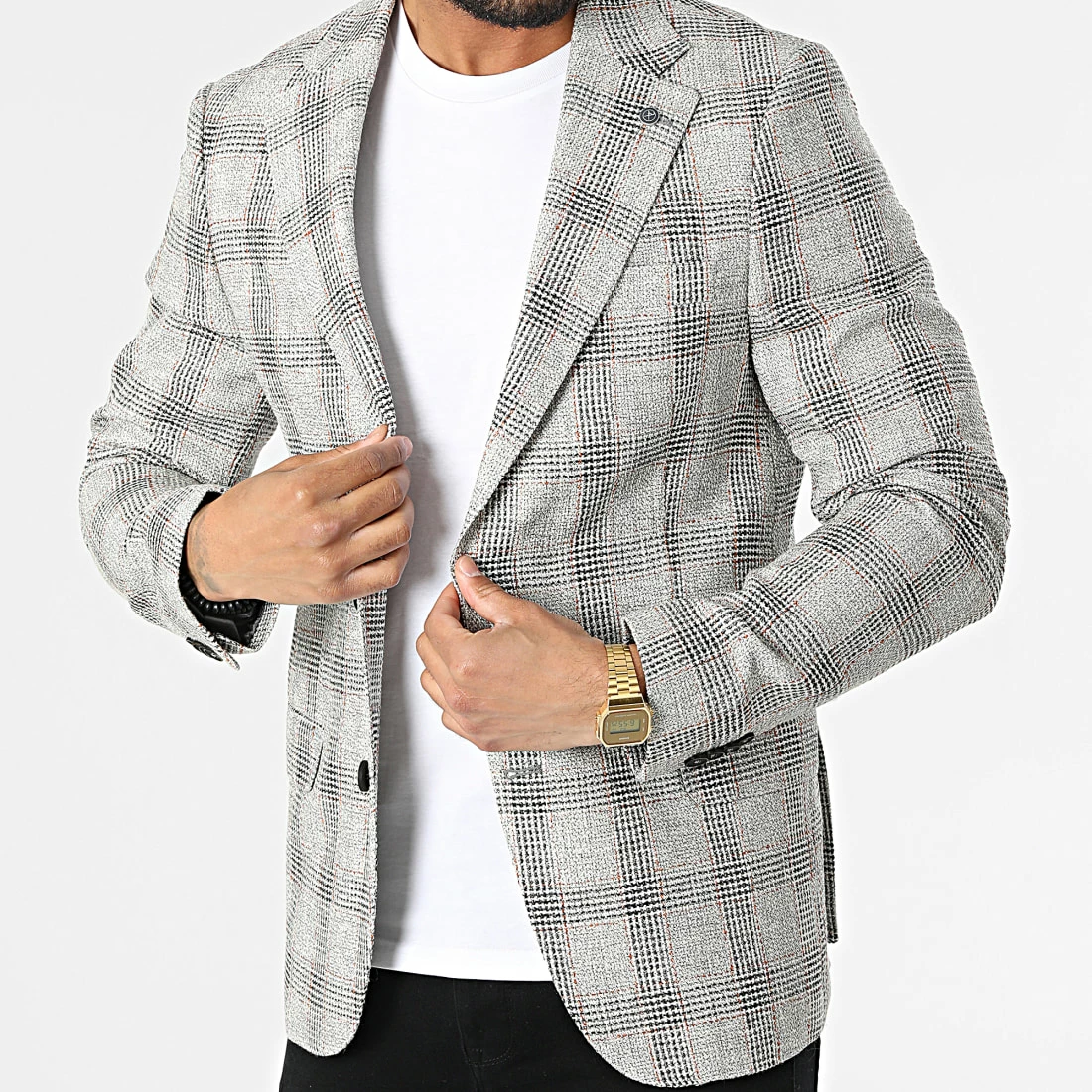 Le moins cher ⭐ Veste Blazer A Carreaux 11587 Gris Chiné de Classic Series 😀