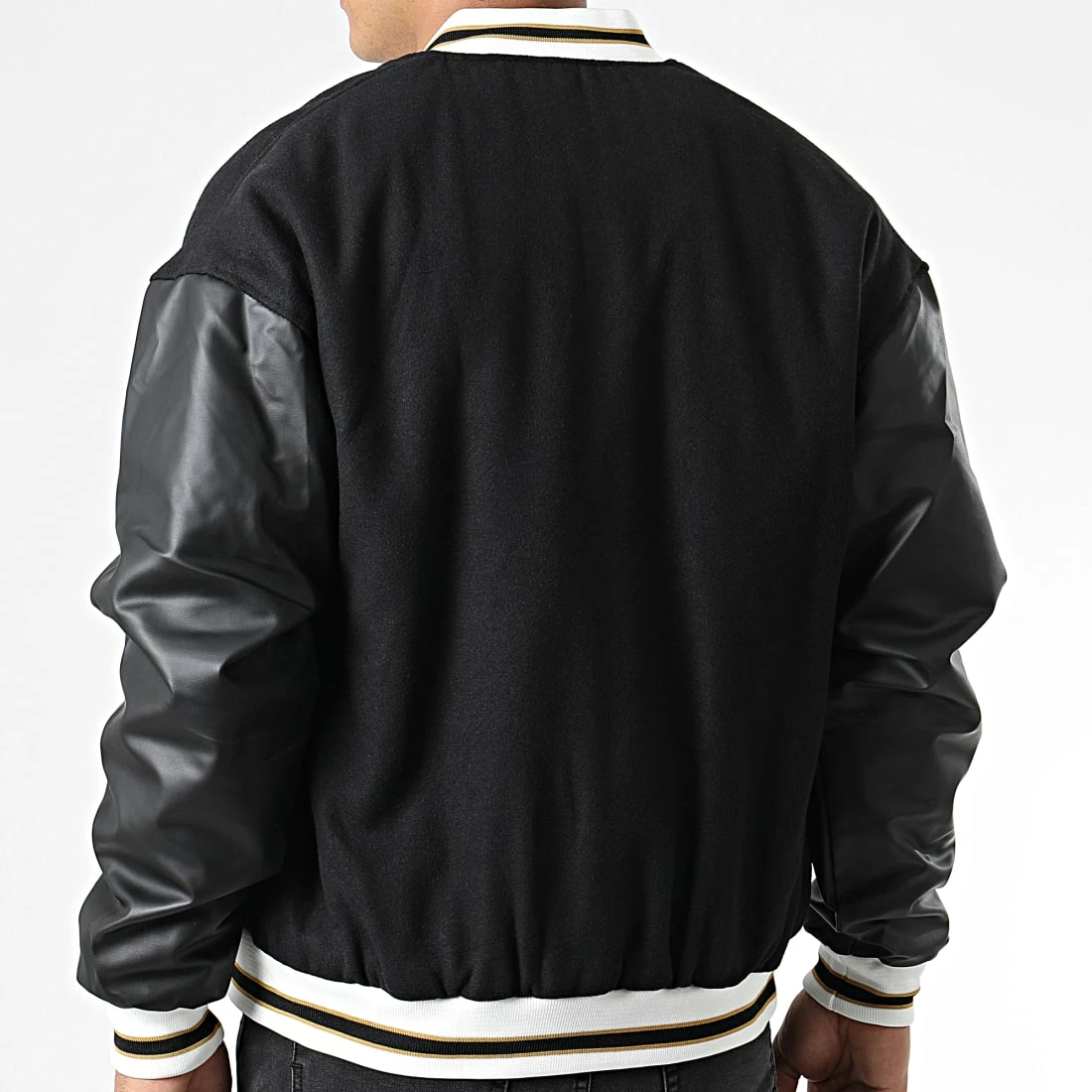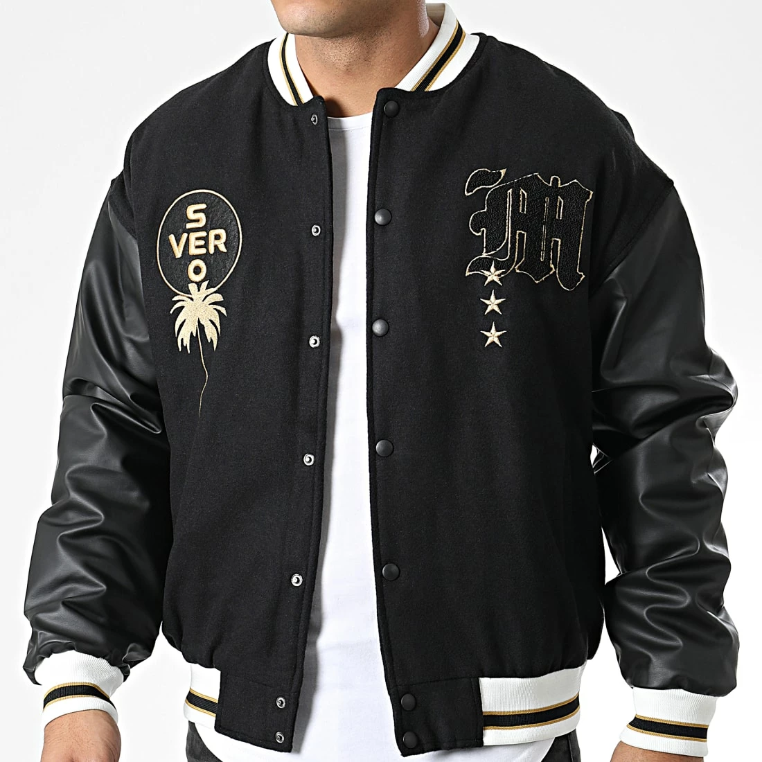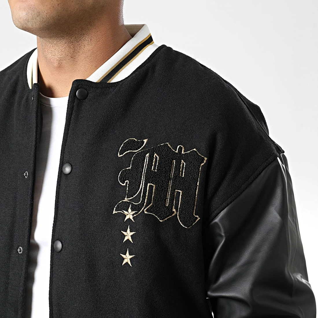 • Veste teddy style baseball avec broderies et manches aspect cuir