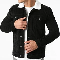 Remise 👏 Veste Velours Col Mouton Corduroy Teddy Noir de Classic Series 😀